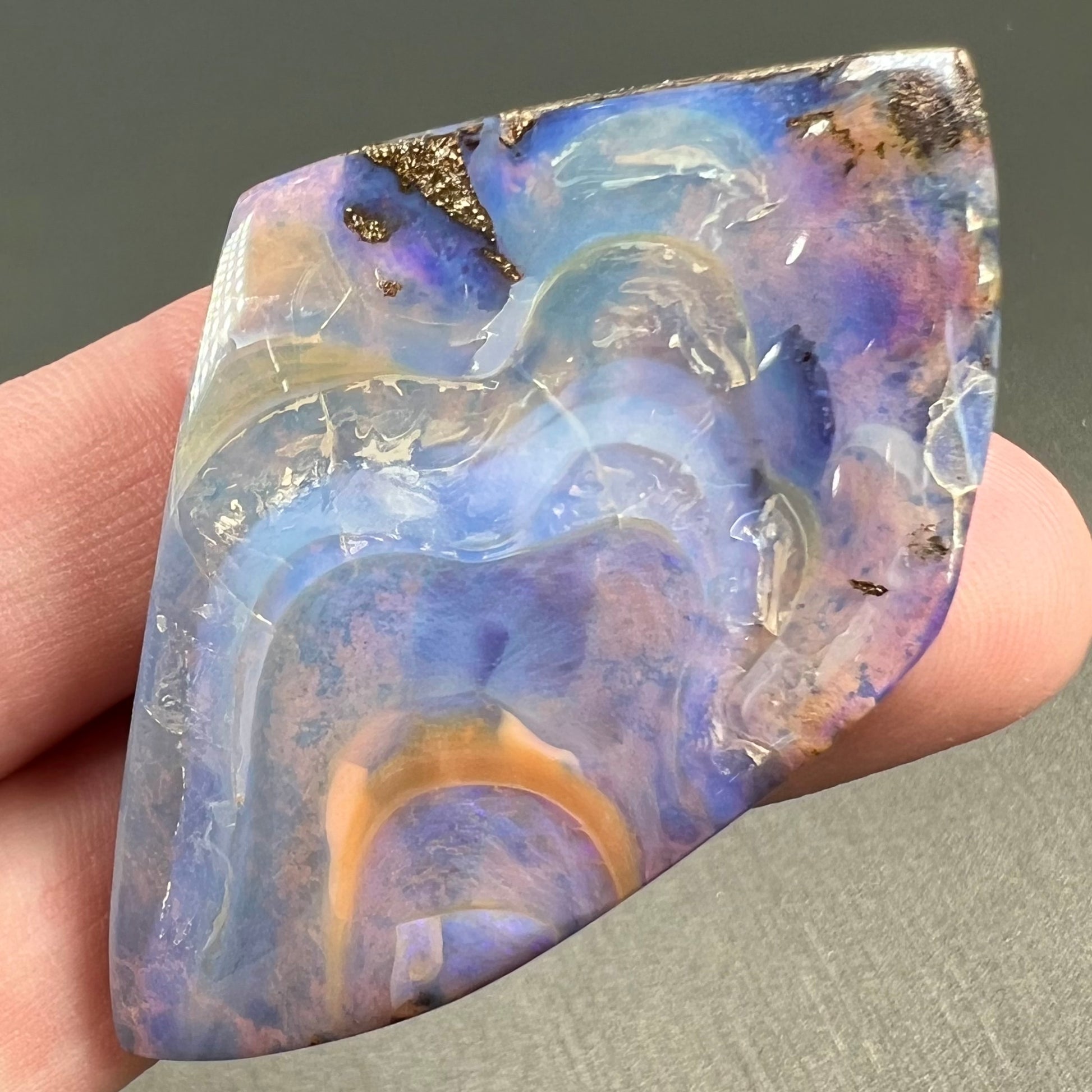 Additional Notes: Thickness of this stone makes it a versatile option for use in pendants and bracelets. This stone is from our latest collection of Quilpie boulder opal from Queensland, Australia. Natural fractures have been left in the stone to intentionally prioritize size and color brightness.