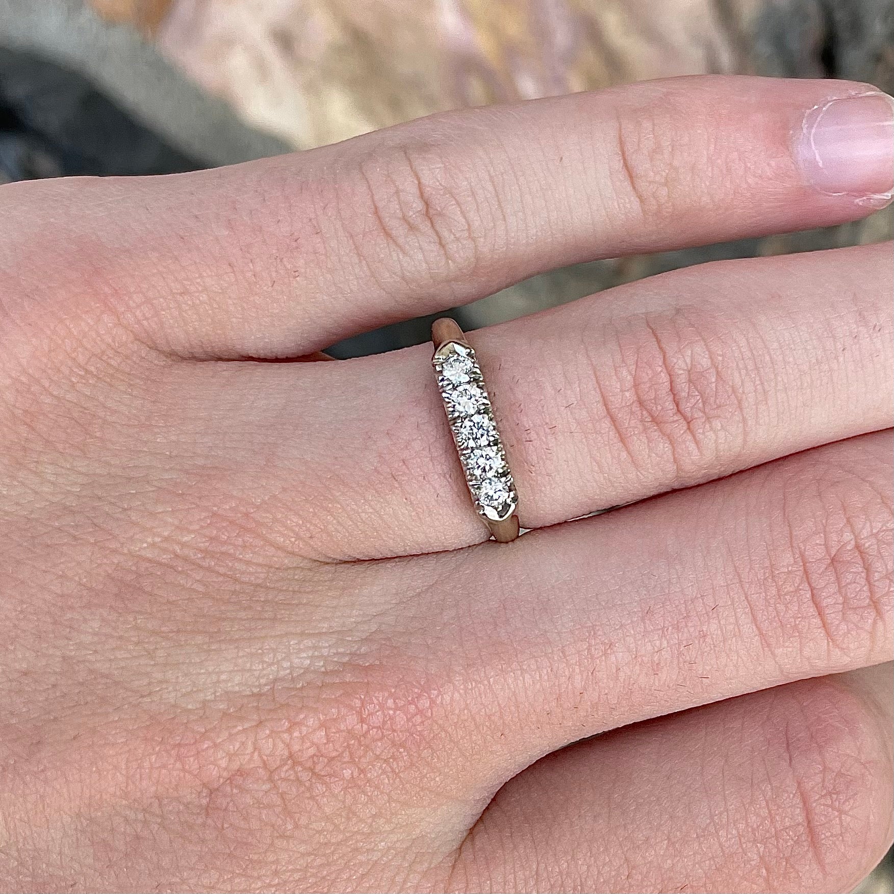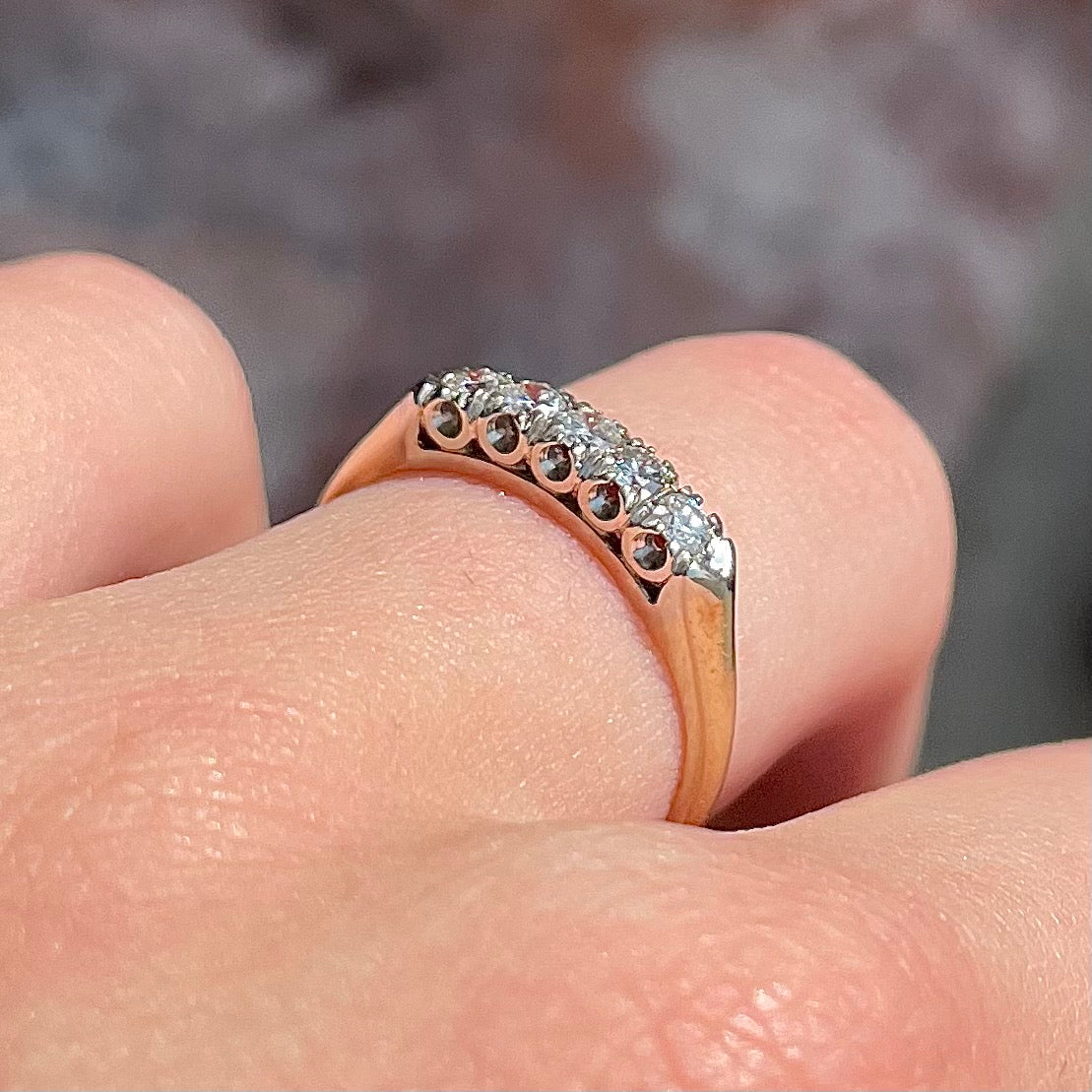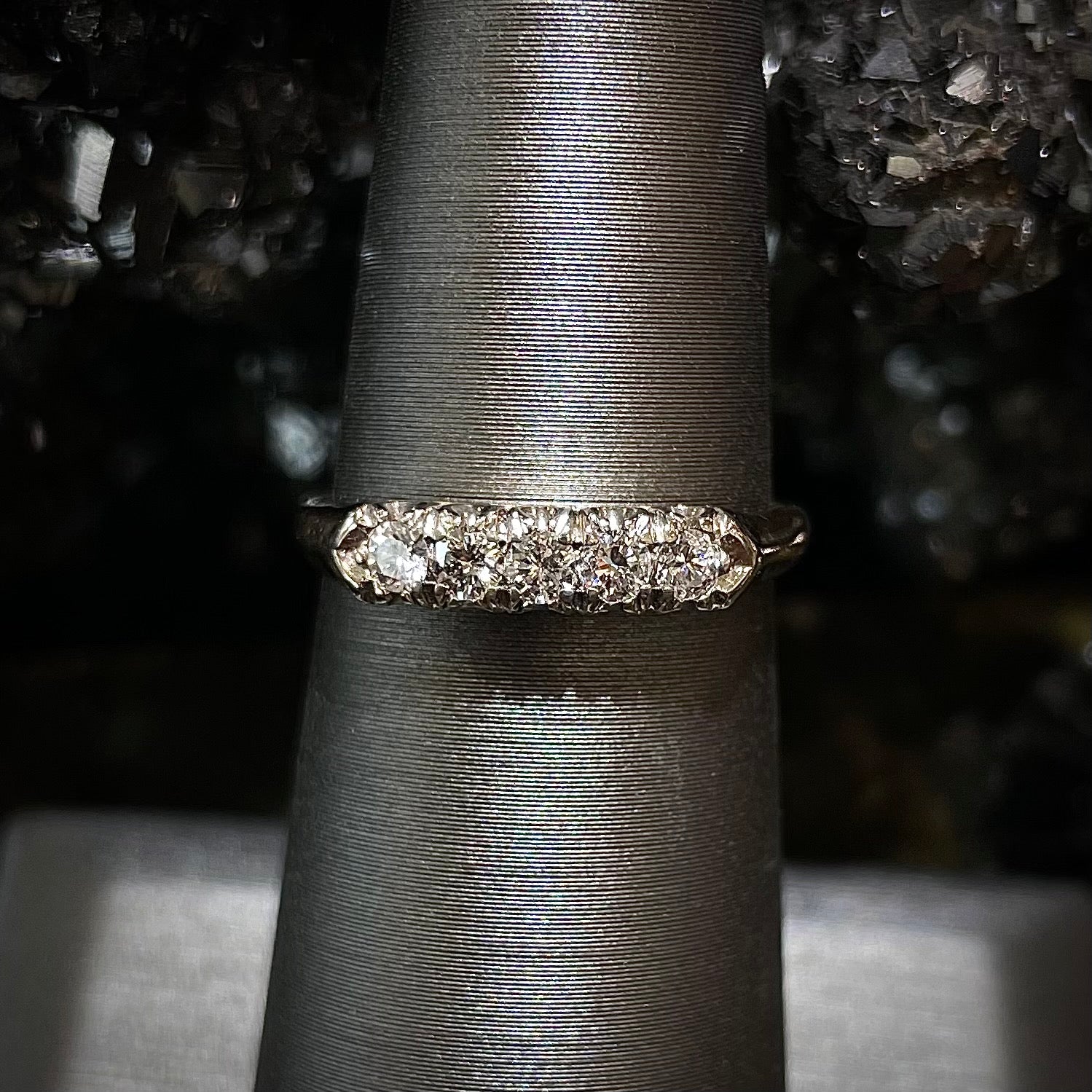 Vintage ring from the 1940's. Simple band of the era set with 5 high quality round brilliant diamonds.