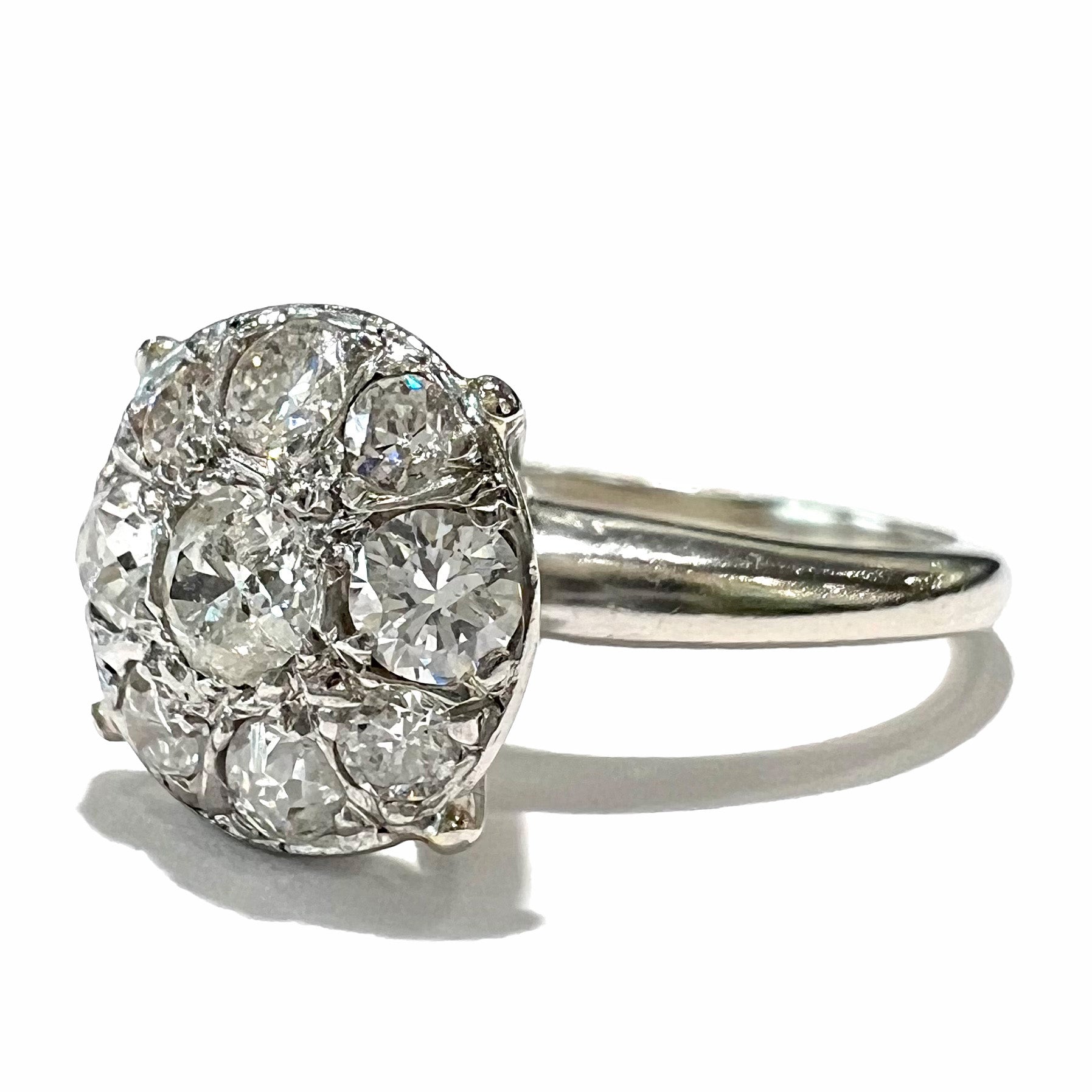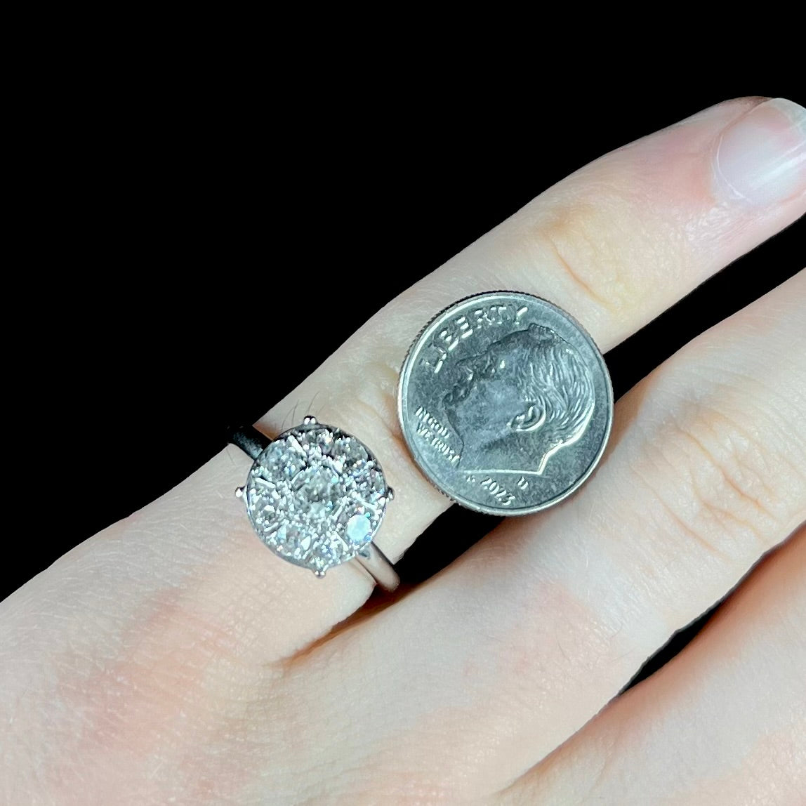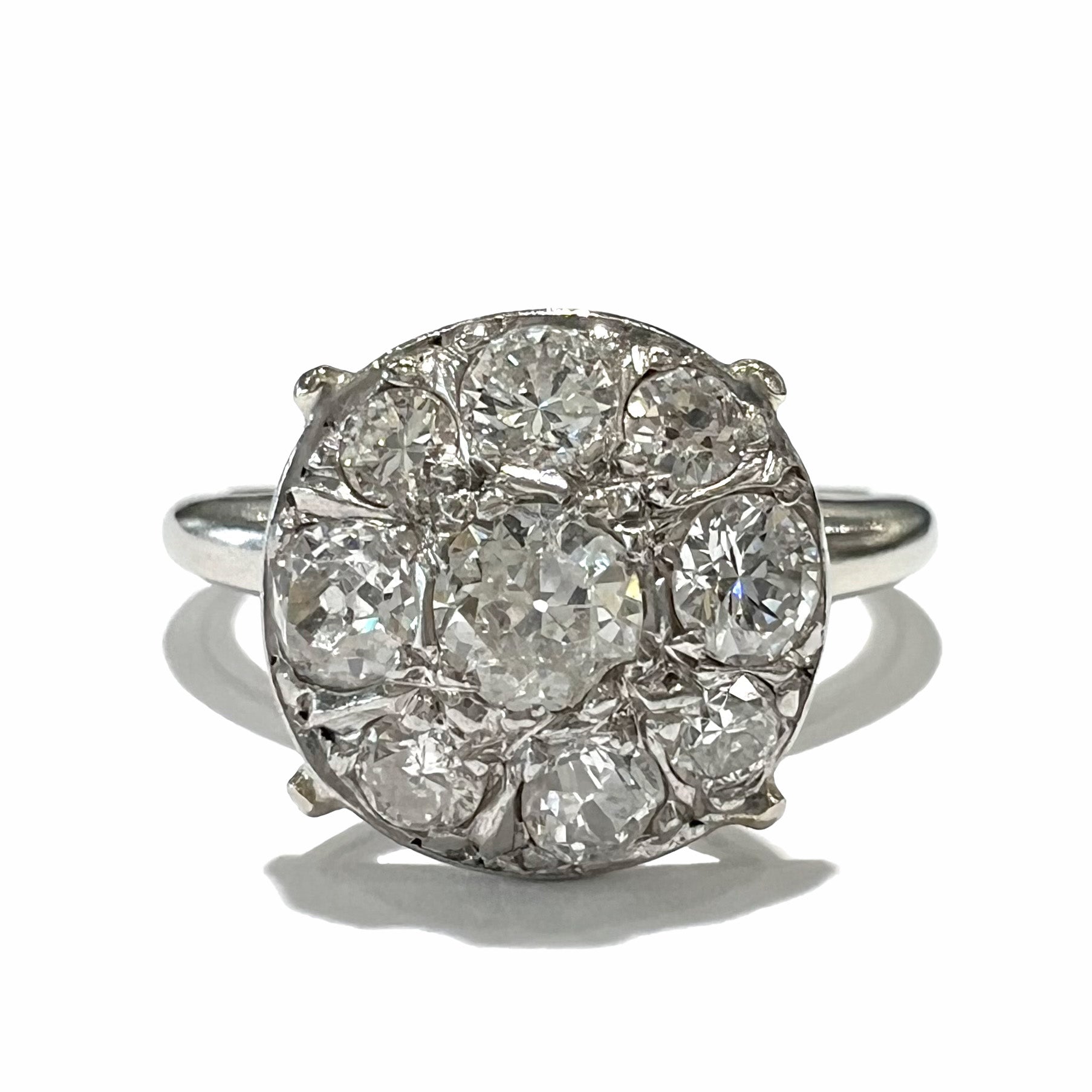 Edwardian Euro Cut Diamond Cluster Ring in 14kt White Gold, c.1910's