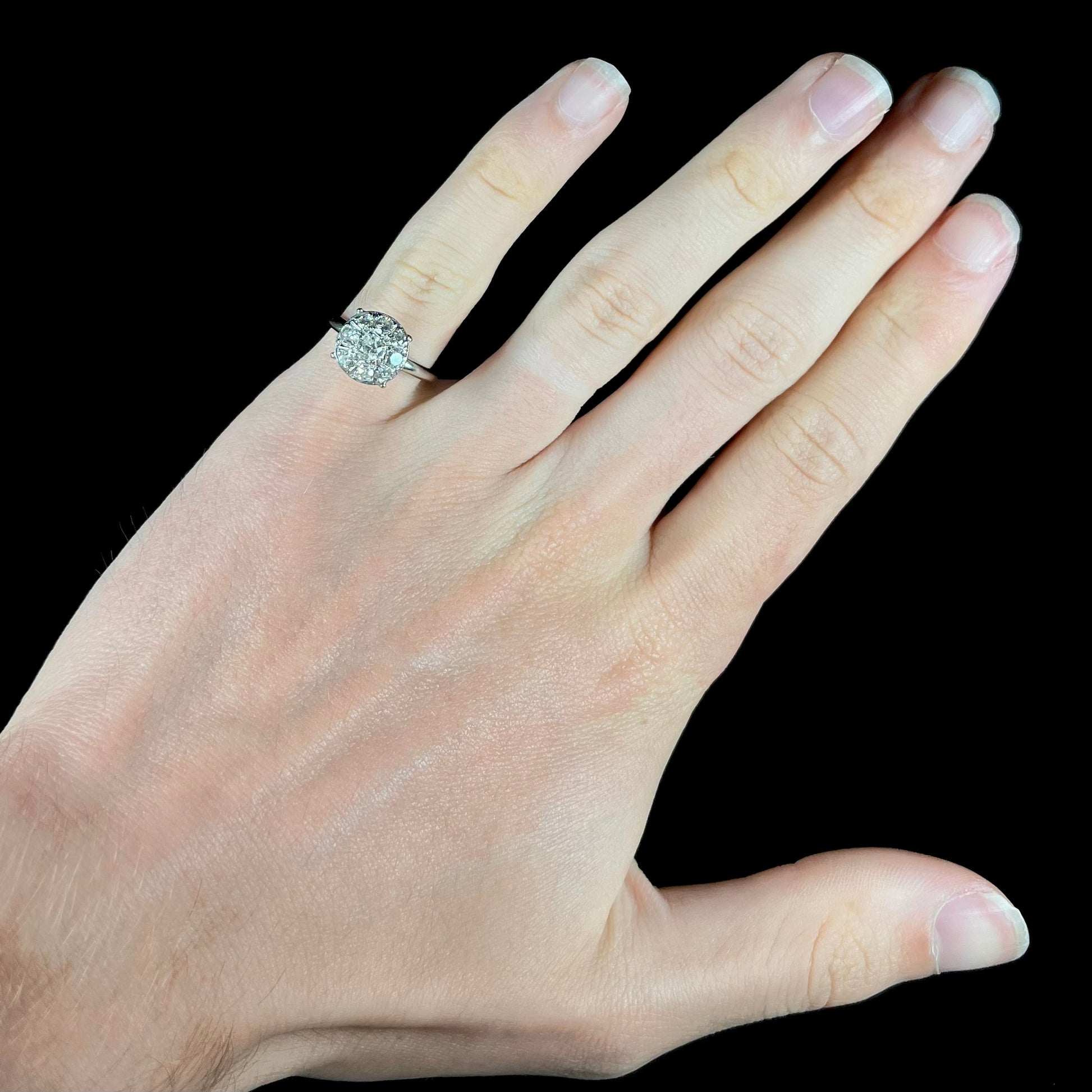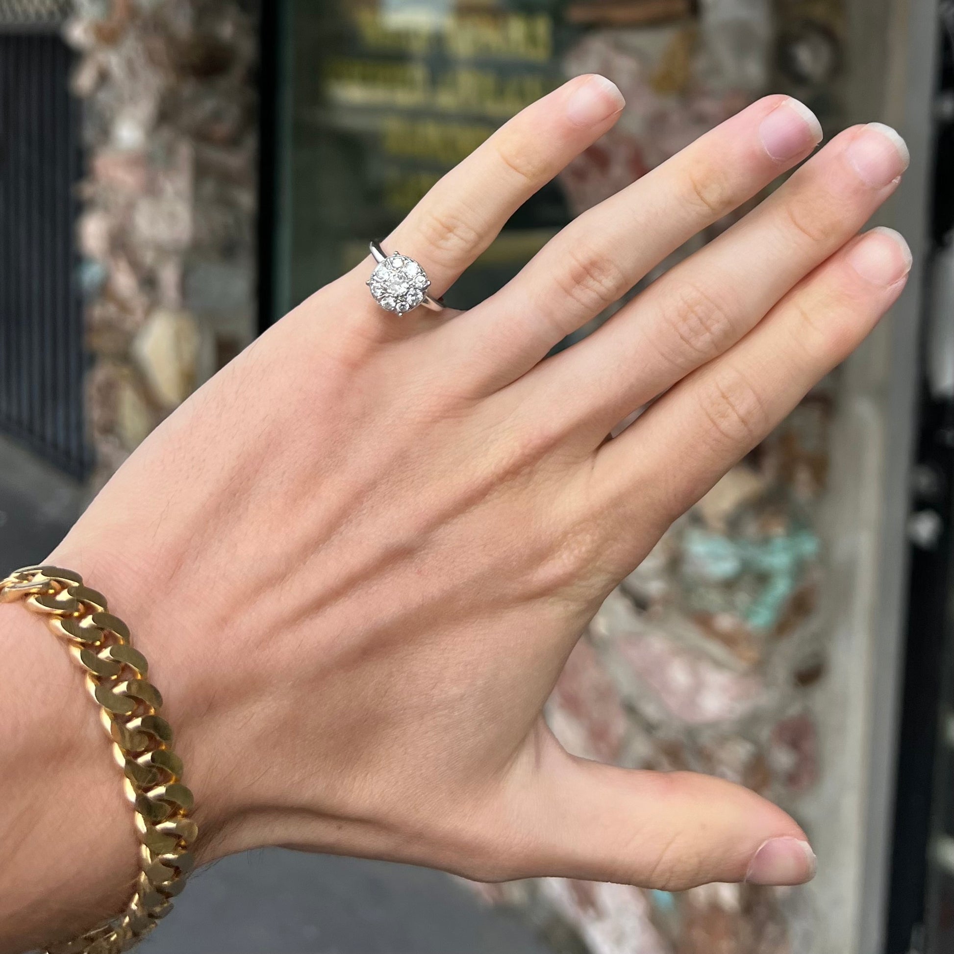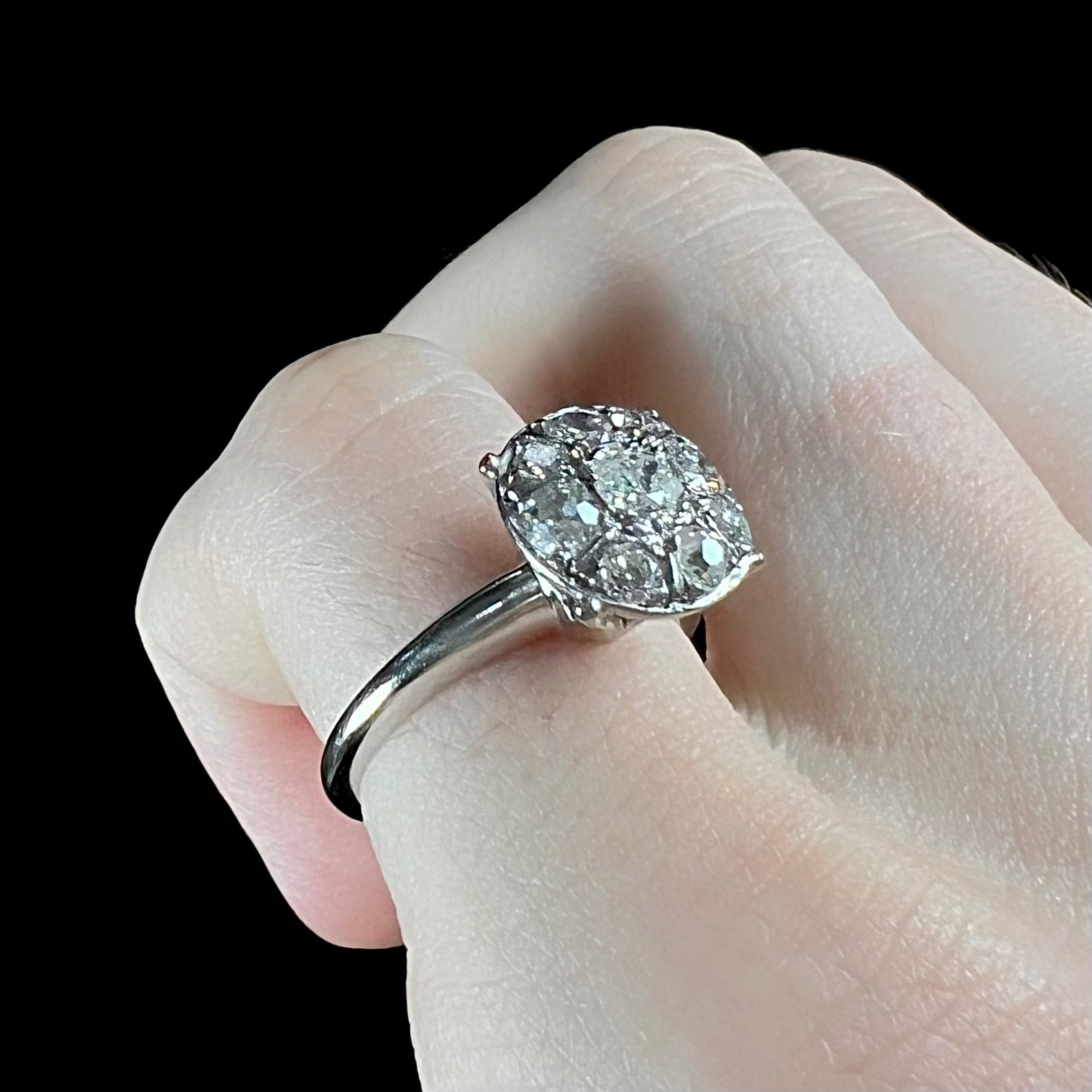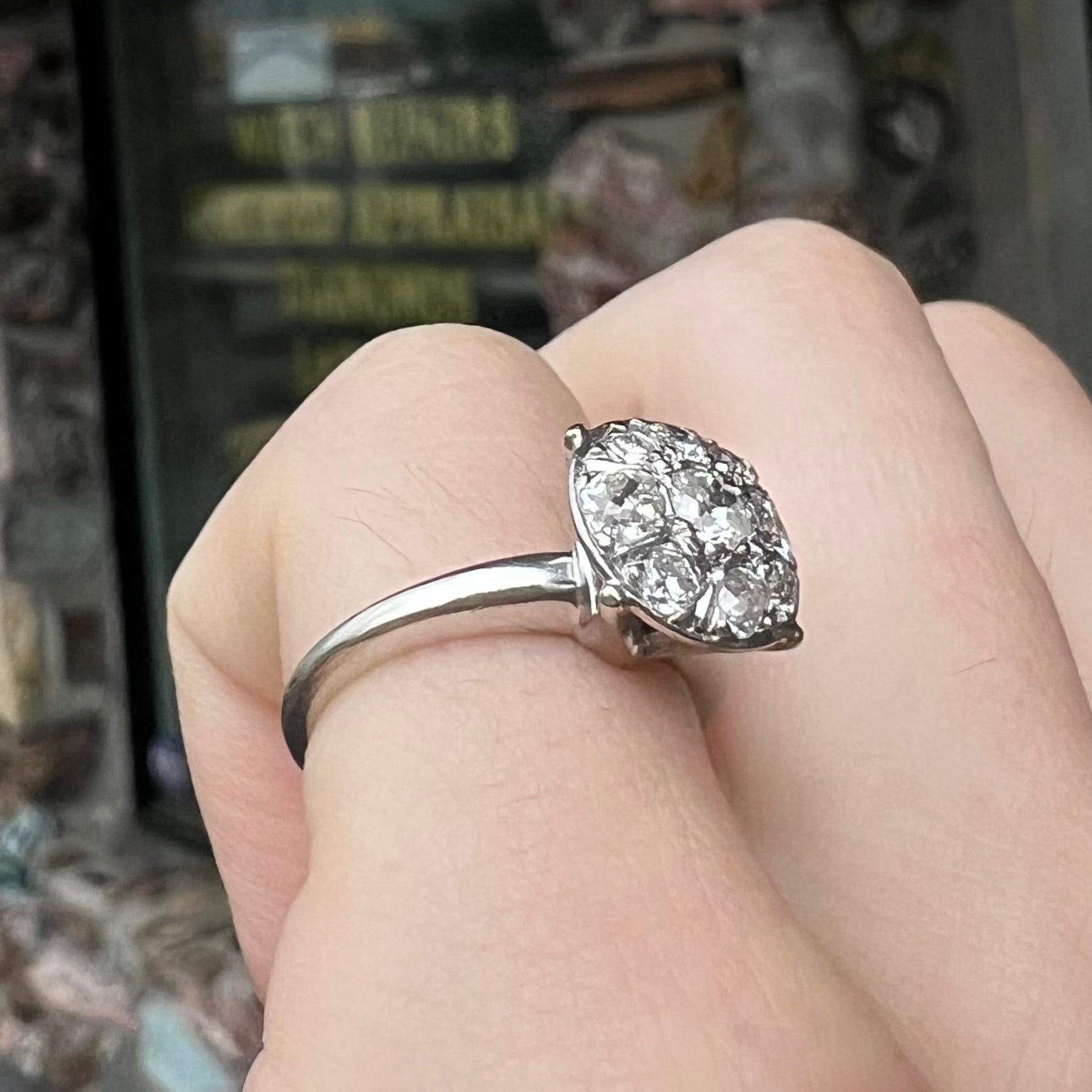 Edwardian Euro Cut Diamond Cluster Ring in 14kt White Gold, c.1910's