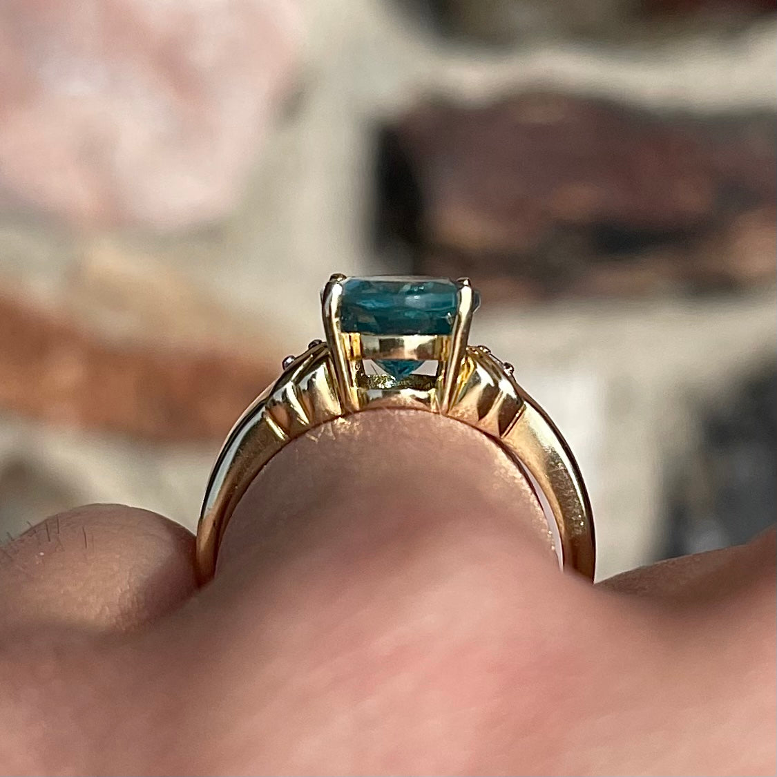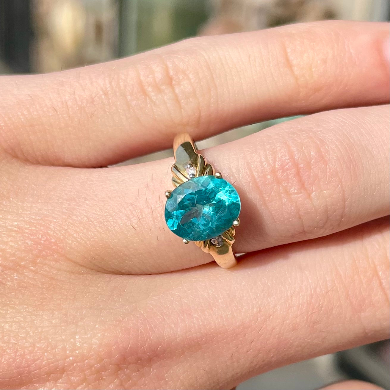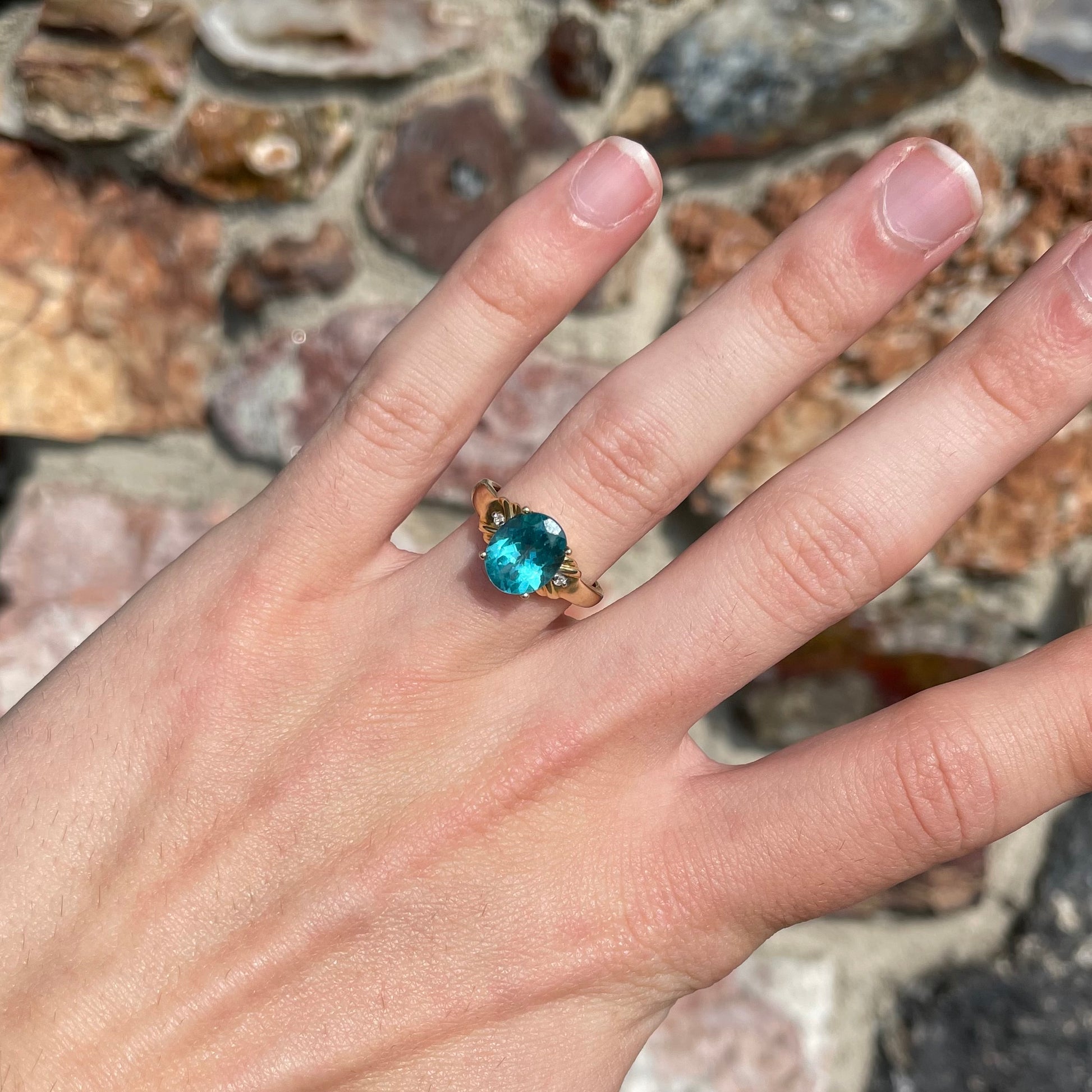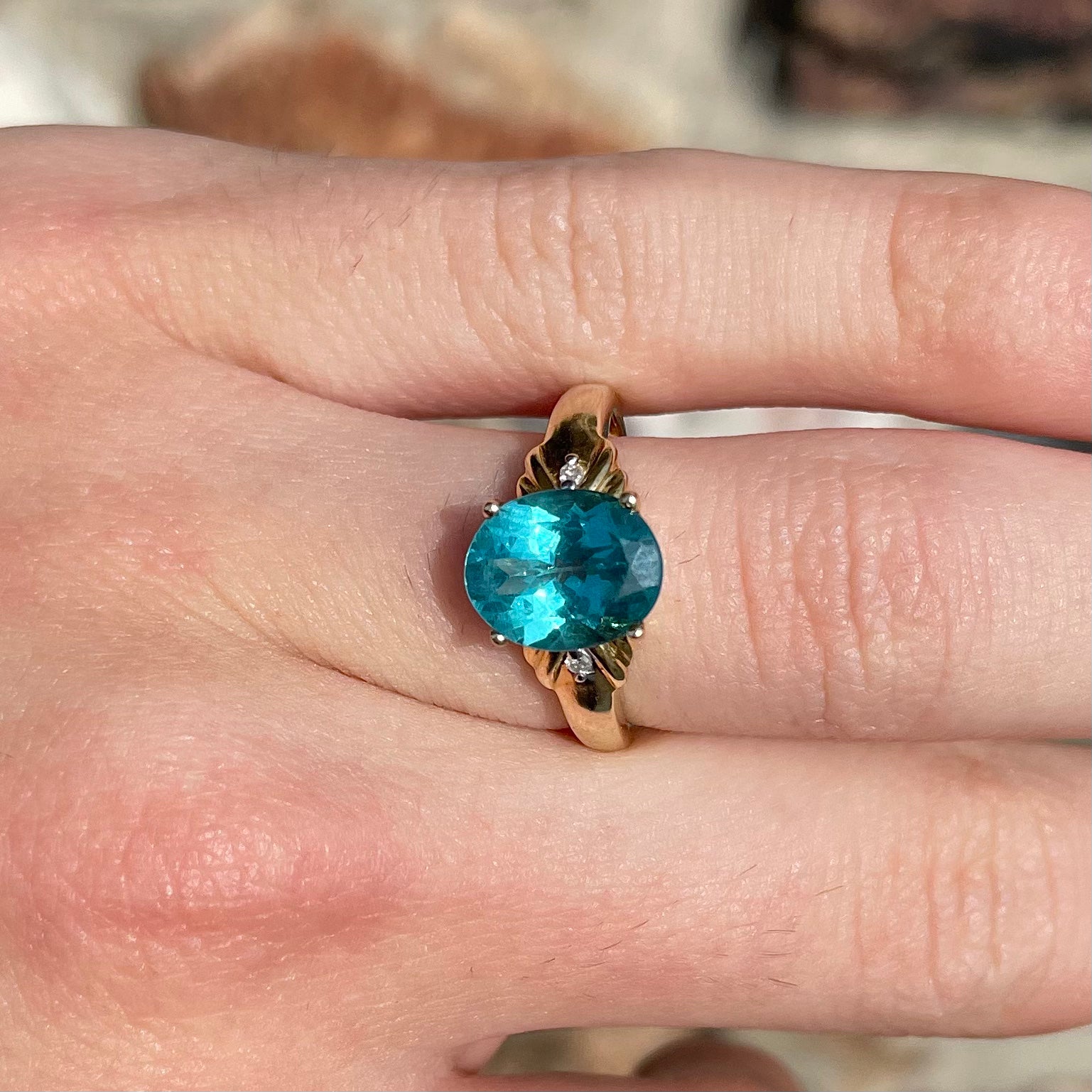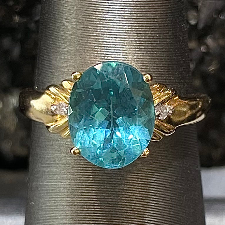 Blue Apatite & Diamond Ring | 14kt