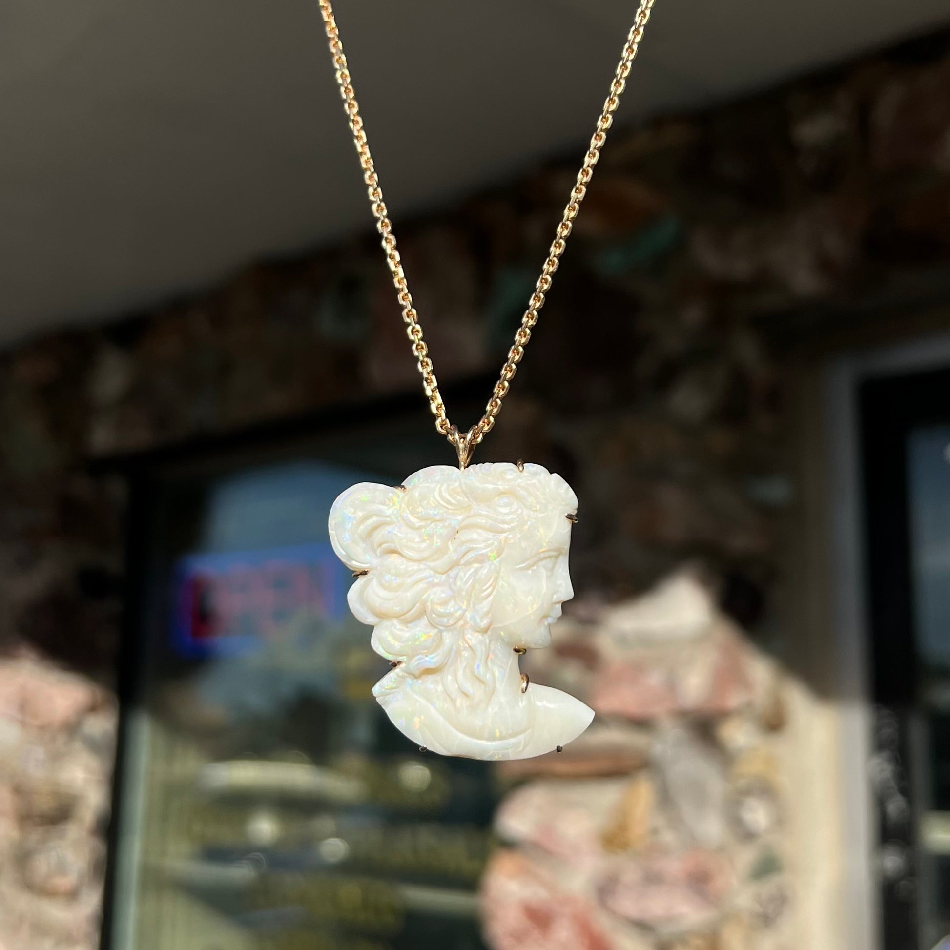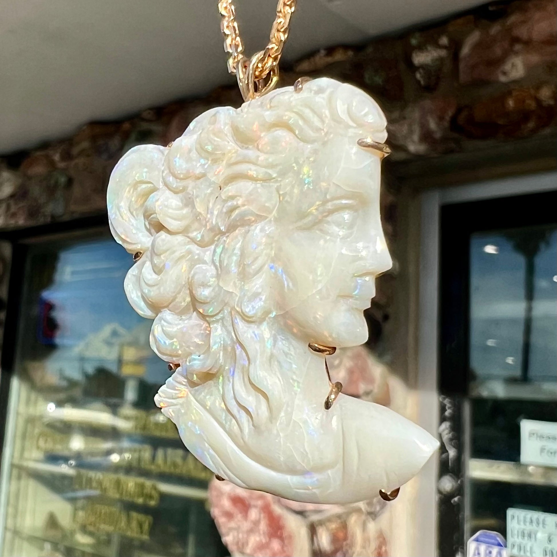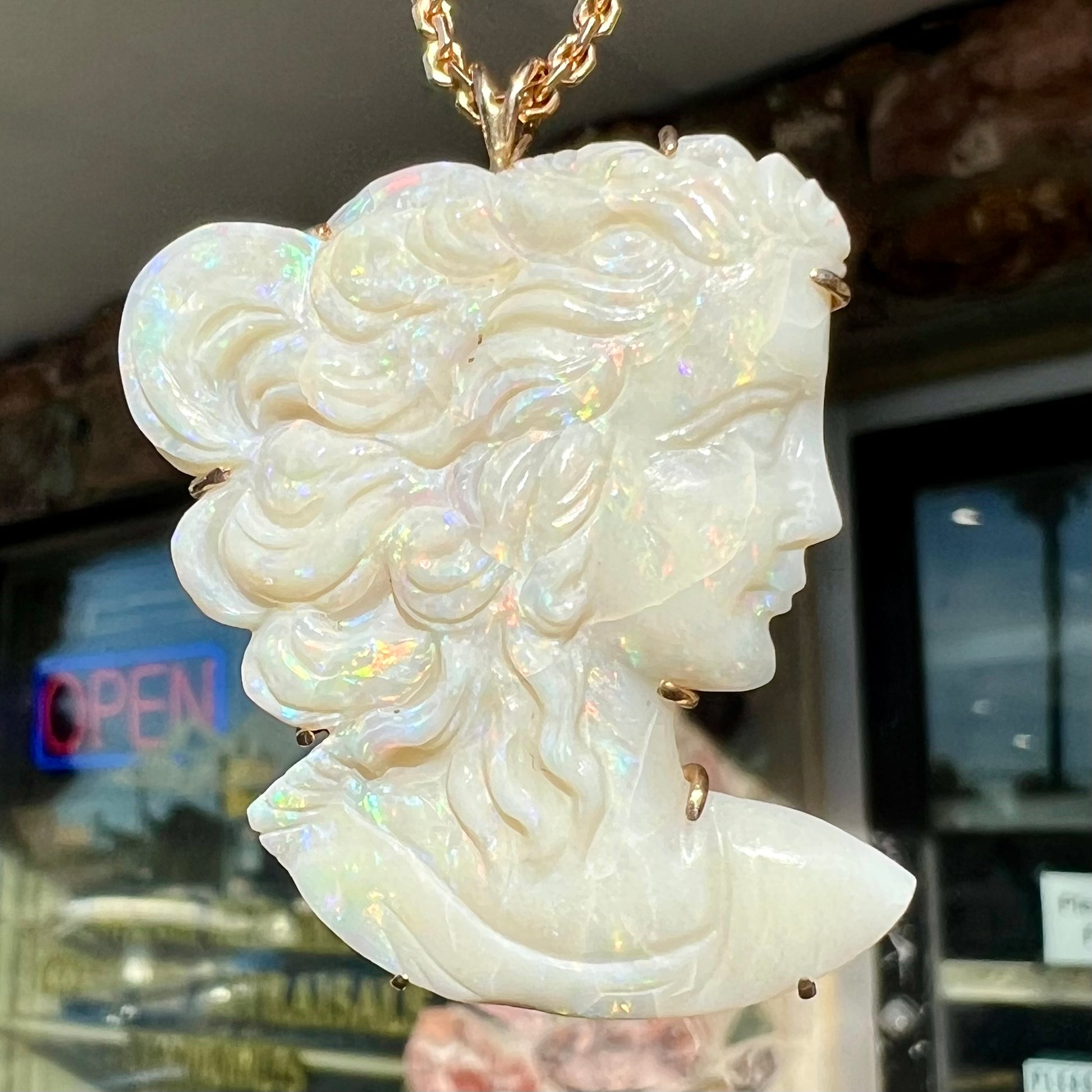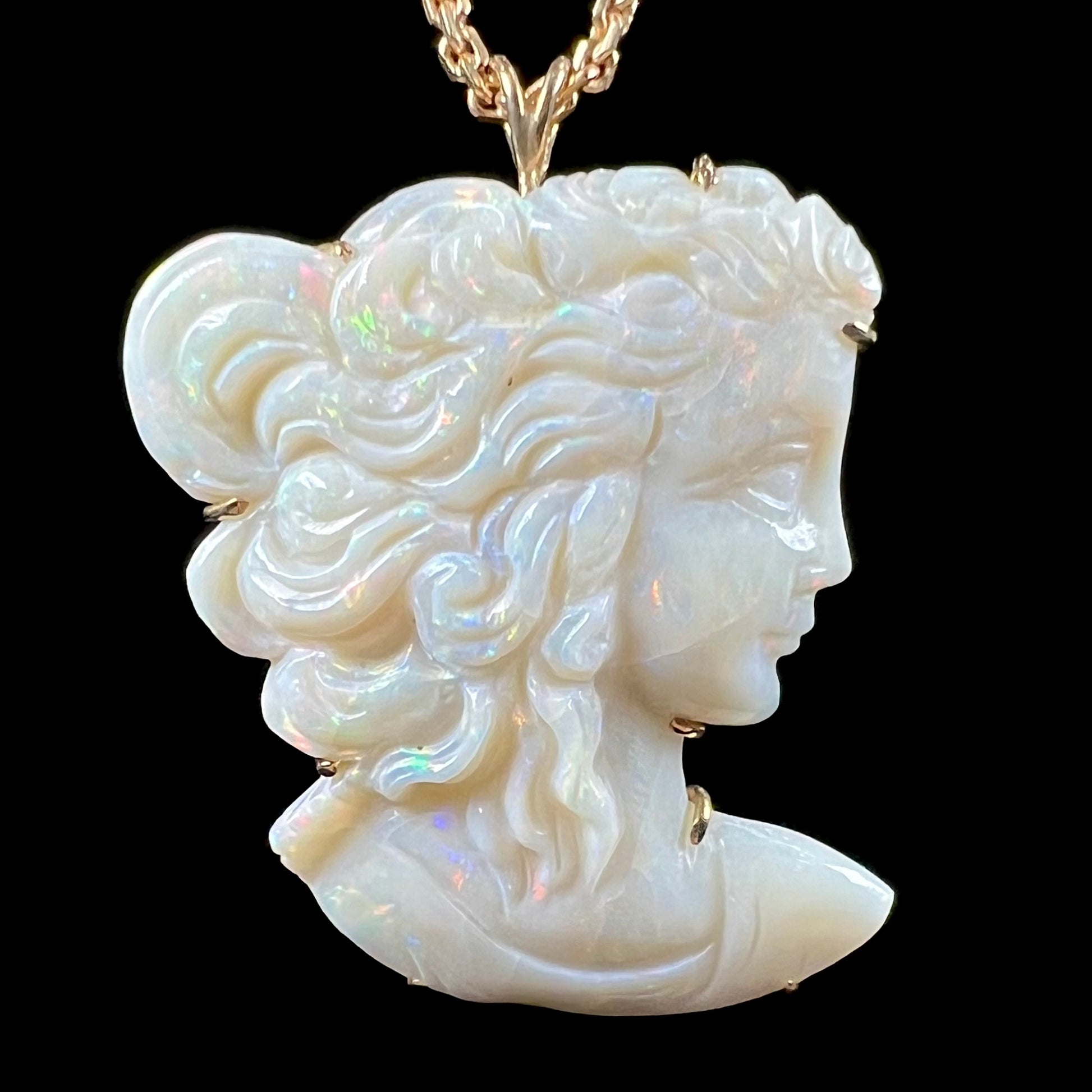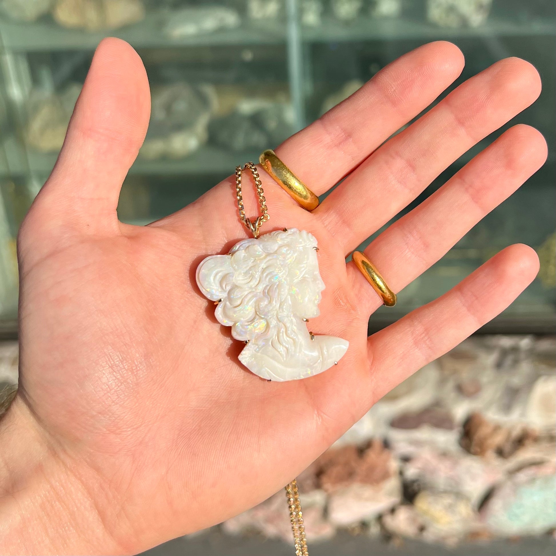 Coober Pedy Crystal Opal Cameo Pendant in 14kt Gold | Vintage c.1950's