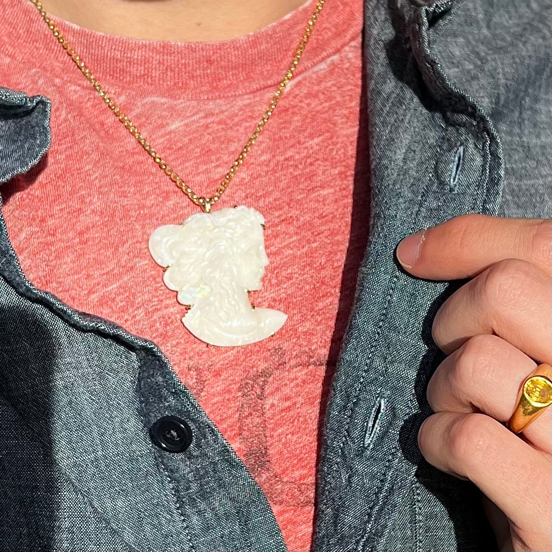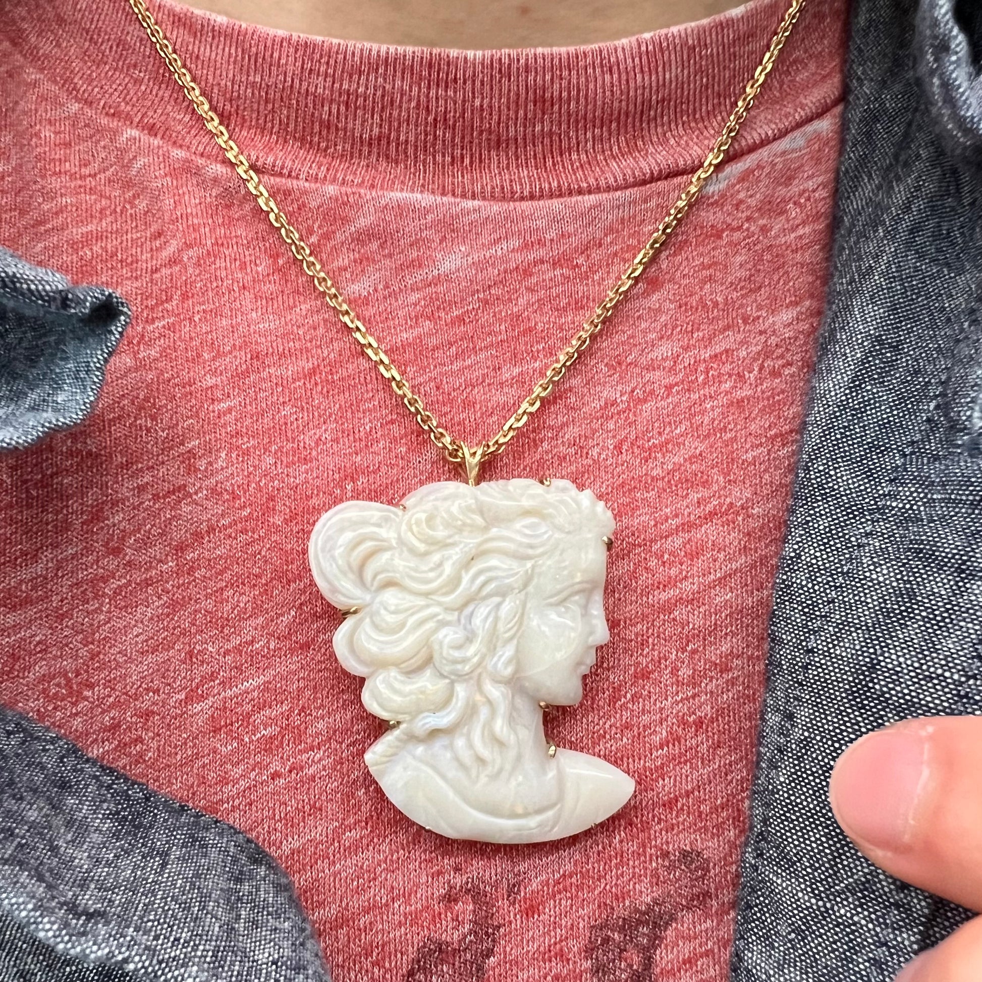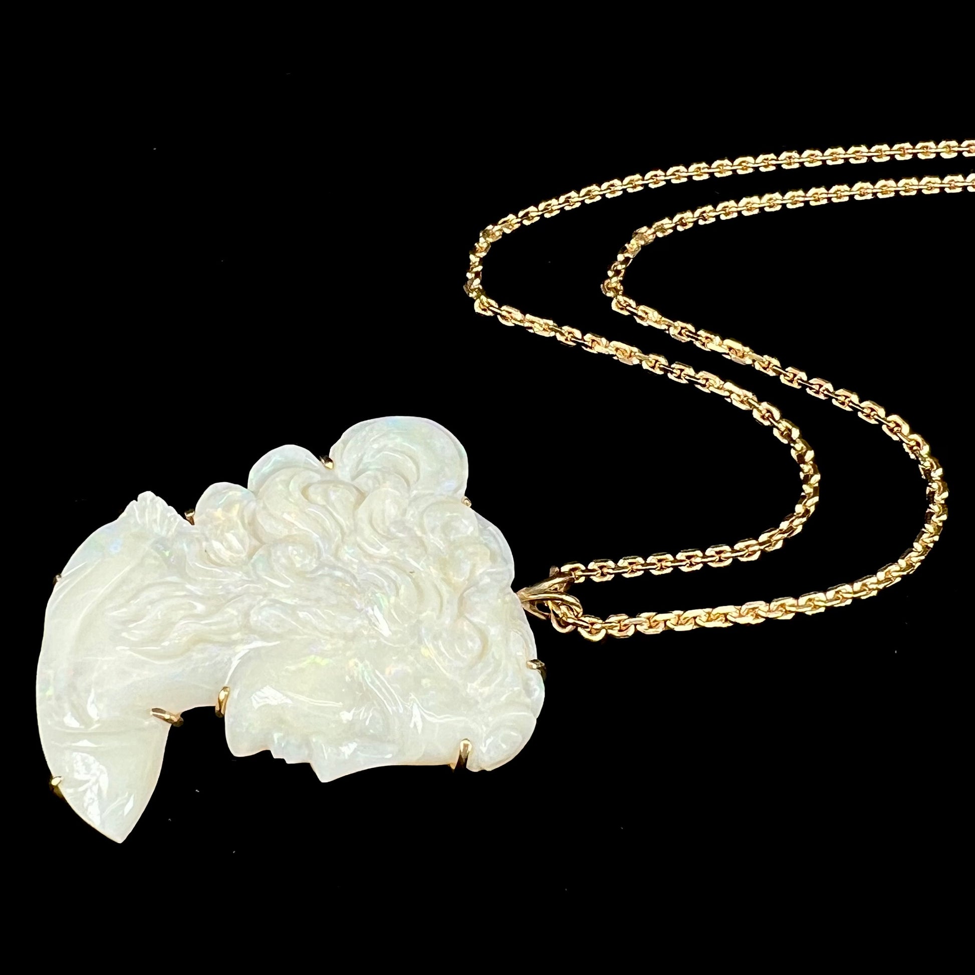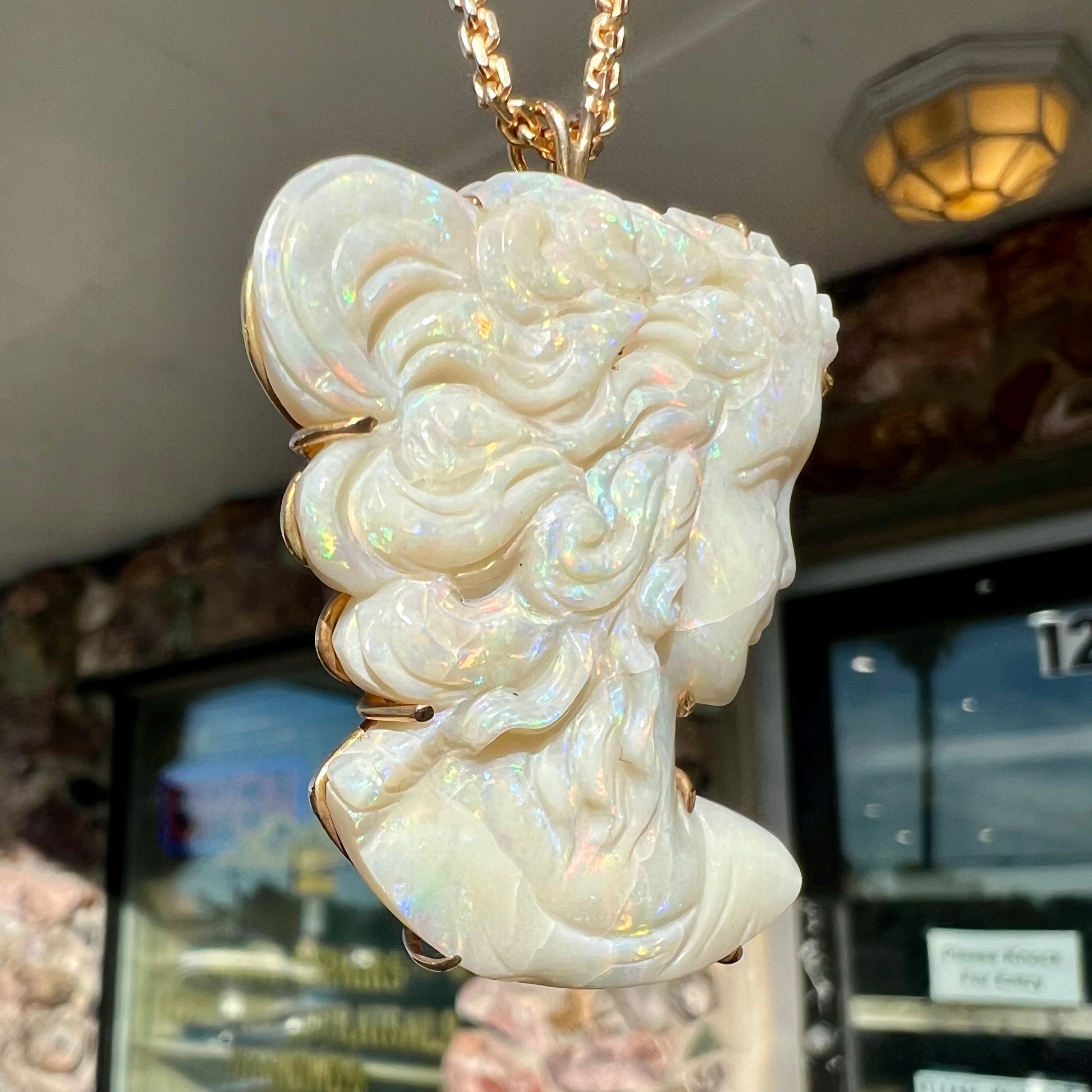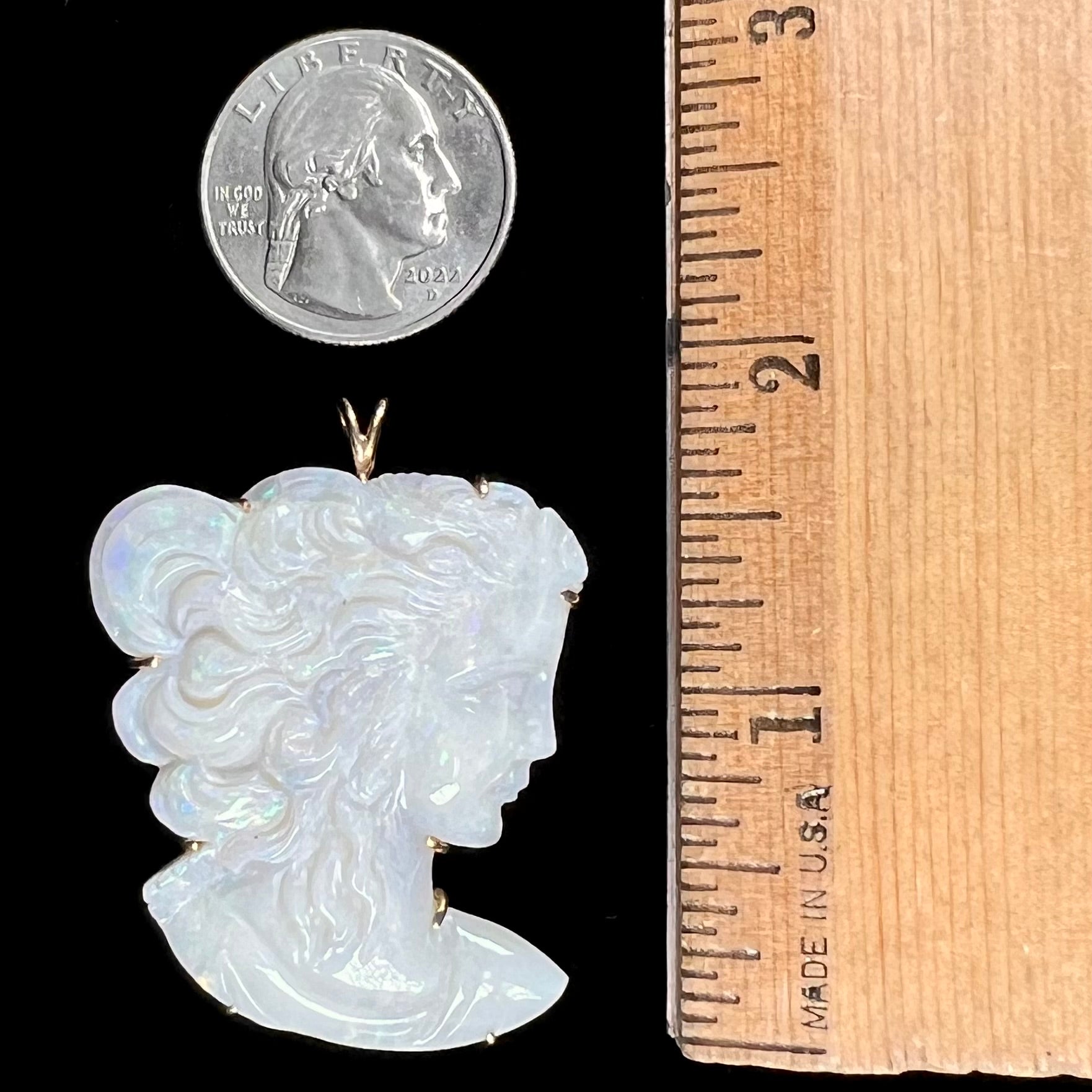 Coober Pedy Crystal Opal Cameo Pendant in 14kt Gold | Vintage c.1950's