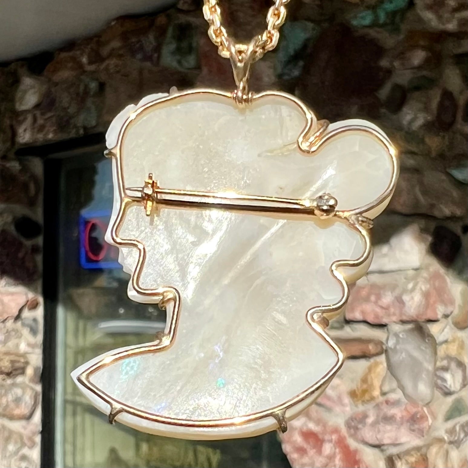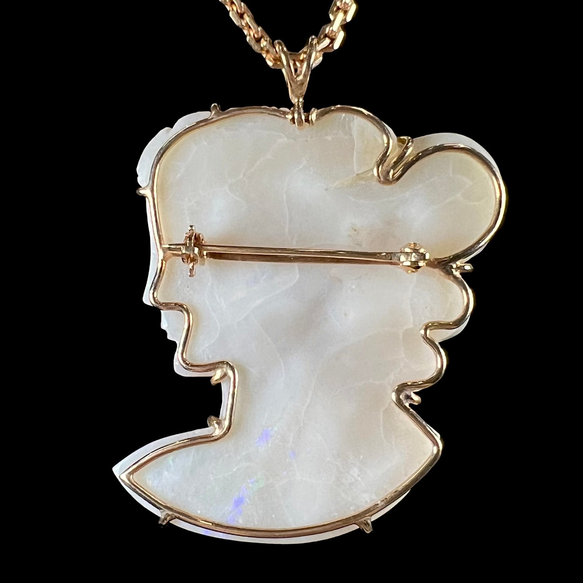 Coober Pedy Crystal Opal Cameo Pendant/Brooch in 14kt Gold | Vintage c.1950's