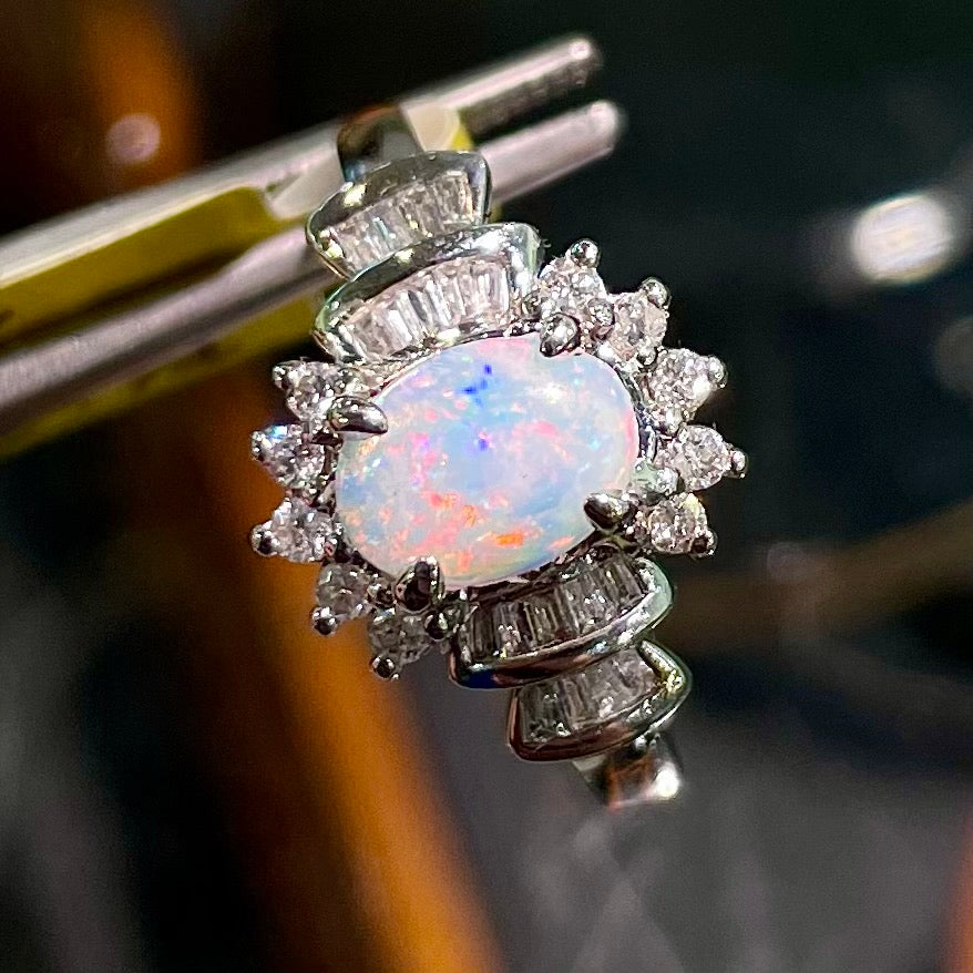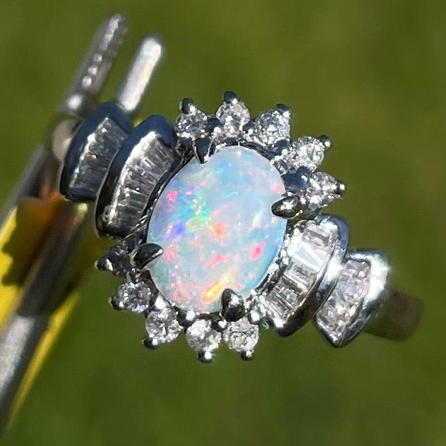 Camille | 2.11ct Australian Crystal Opal & Diamond Platinum Ring