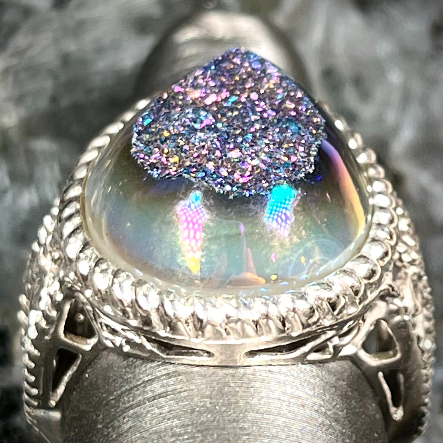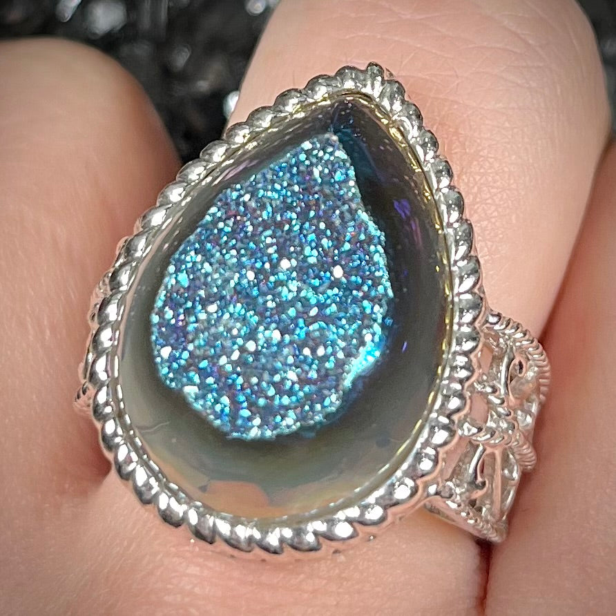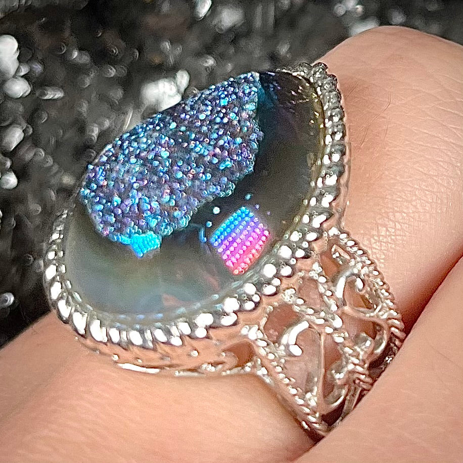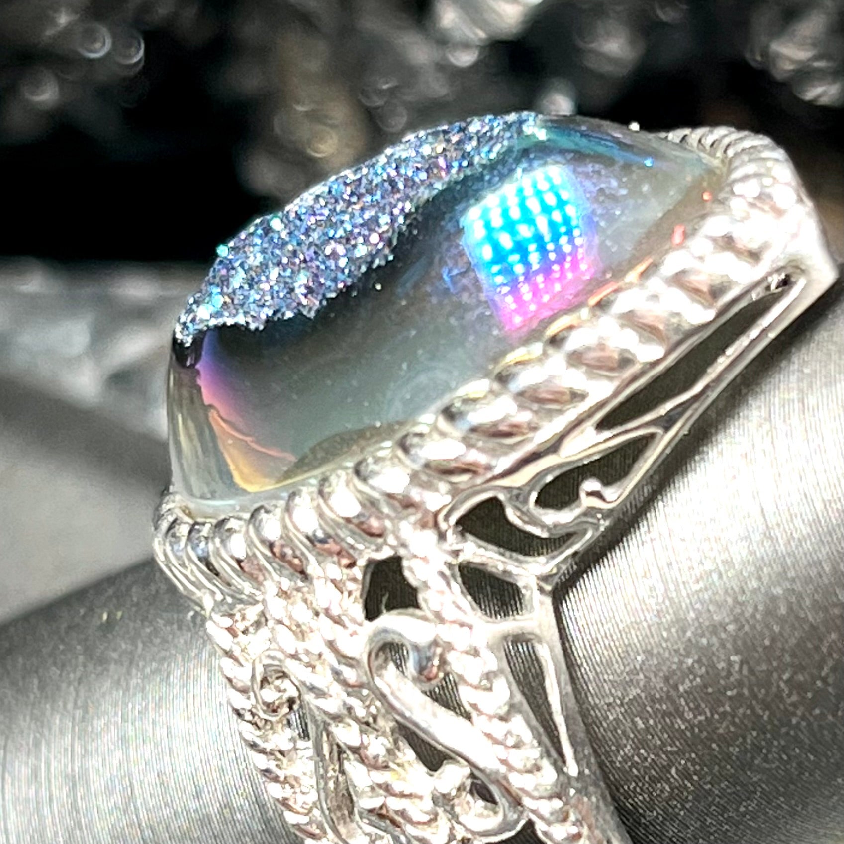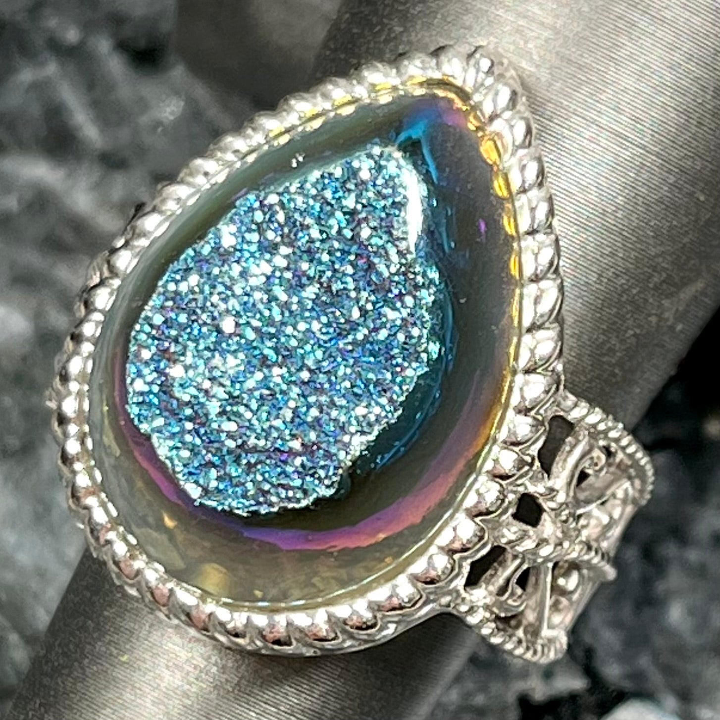 The Setting: Bezel Set Sterling Silver Setting with filigree shank