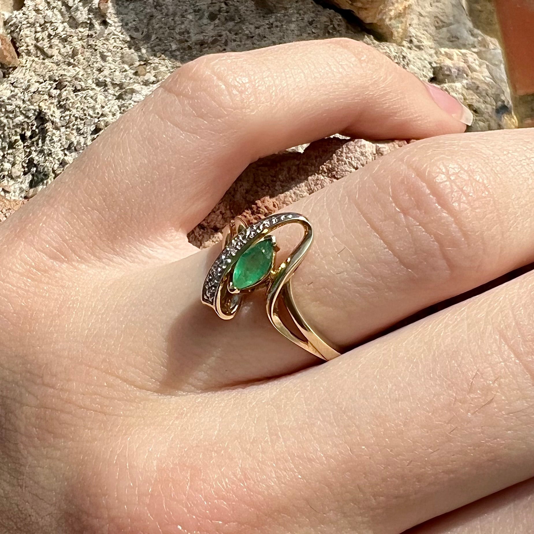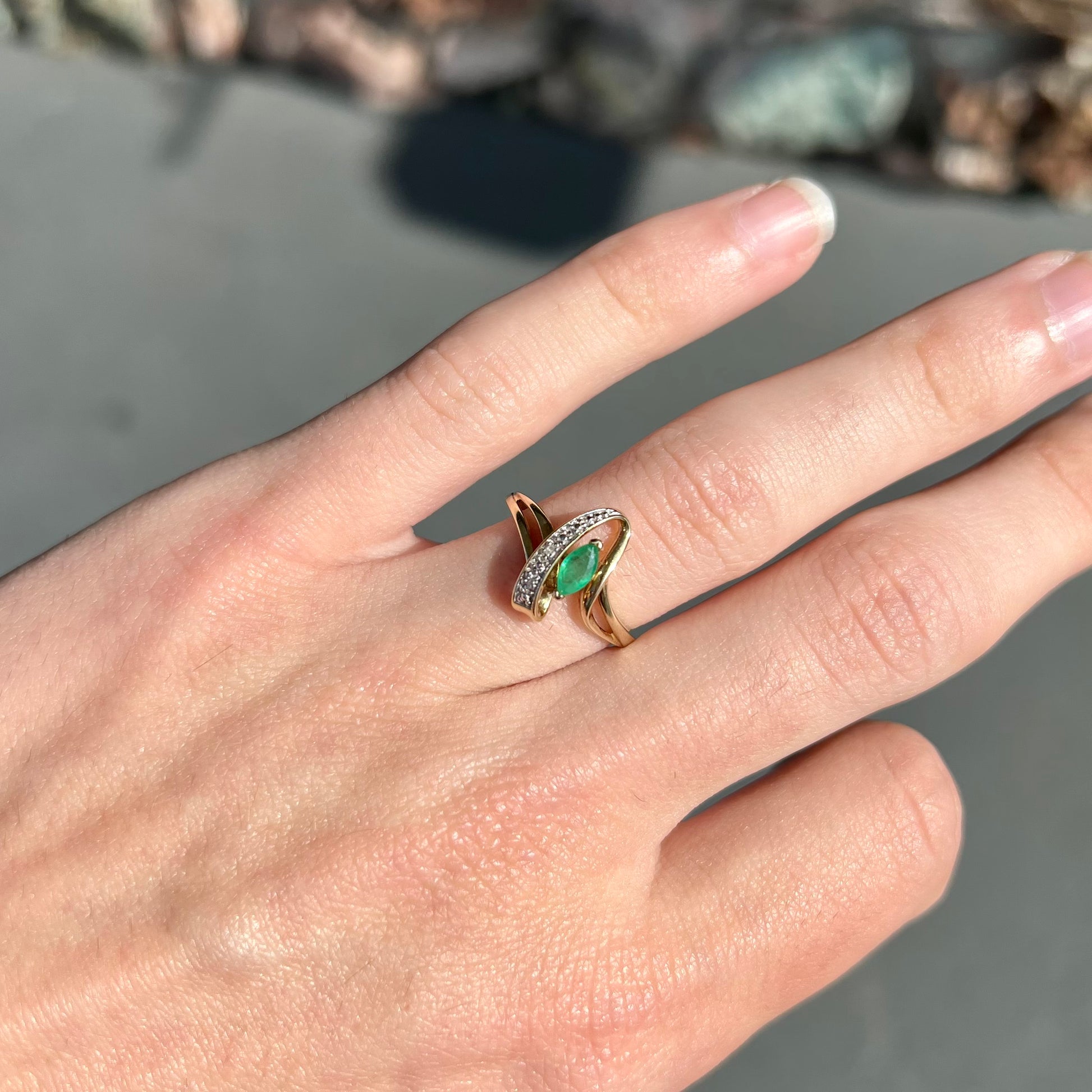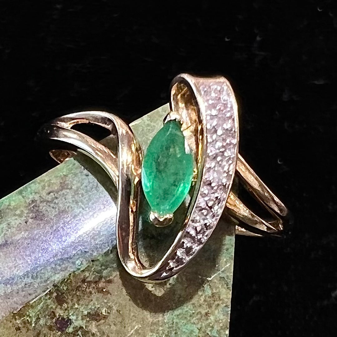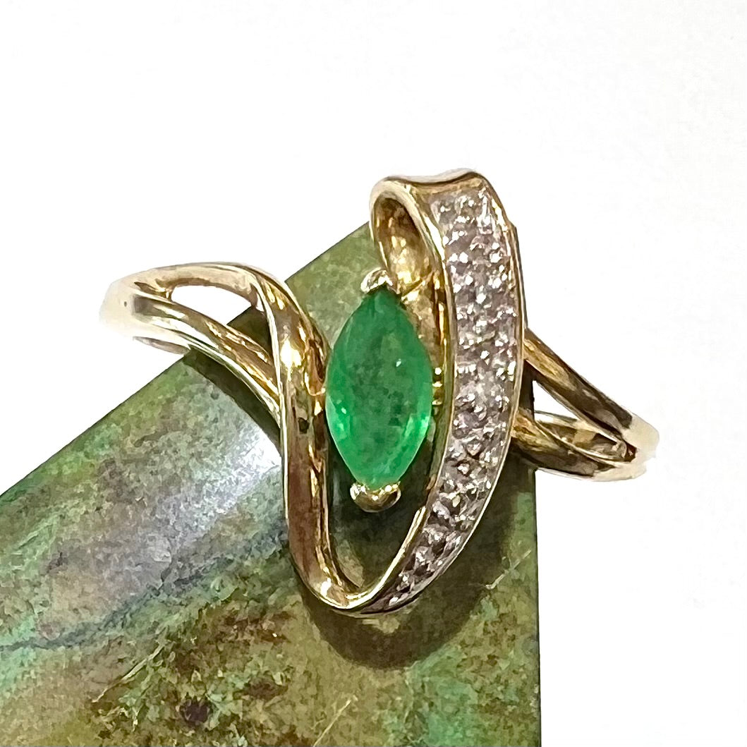 Emerald Marquise & Diamond Accent Ring | 10kt