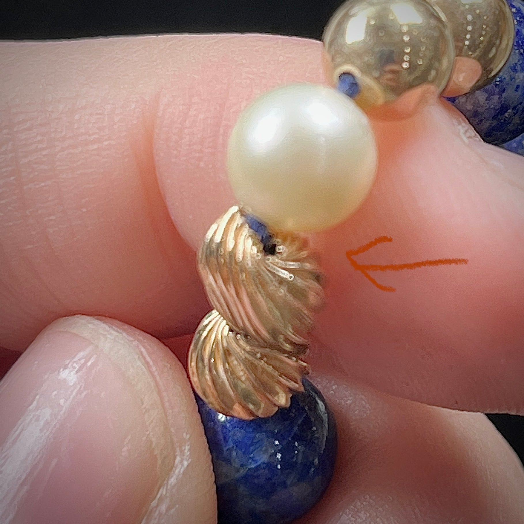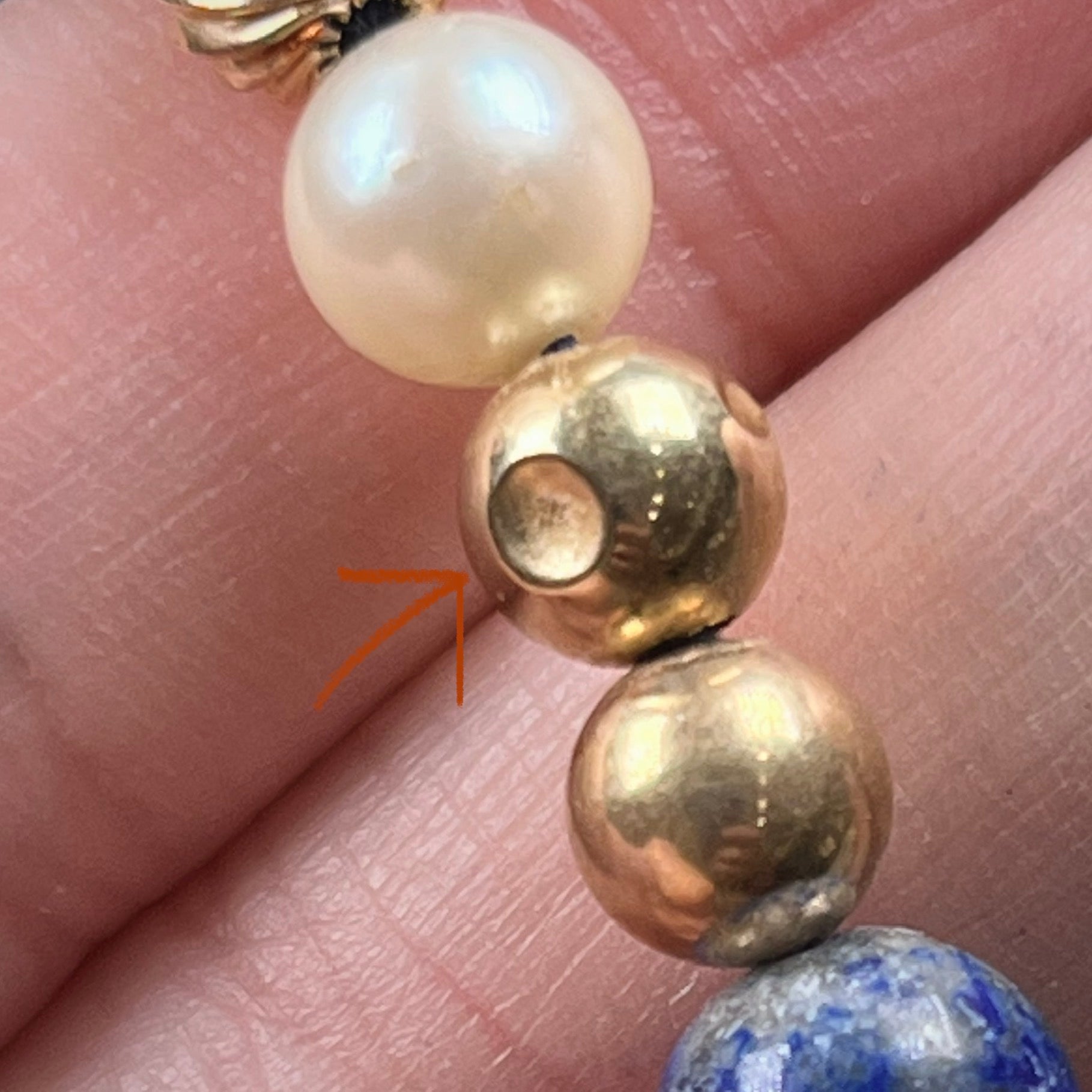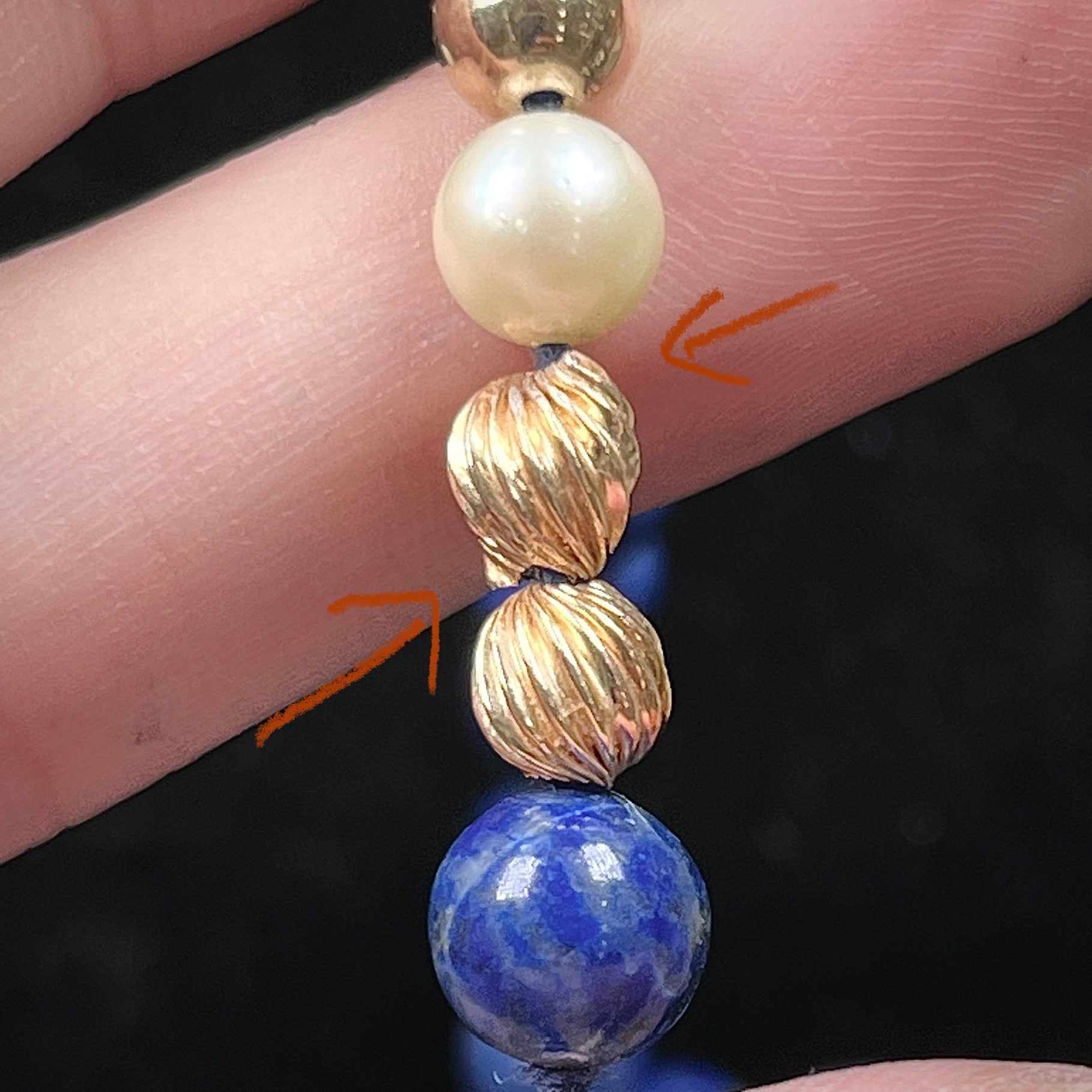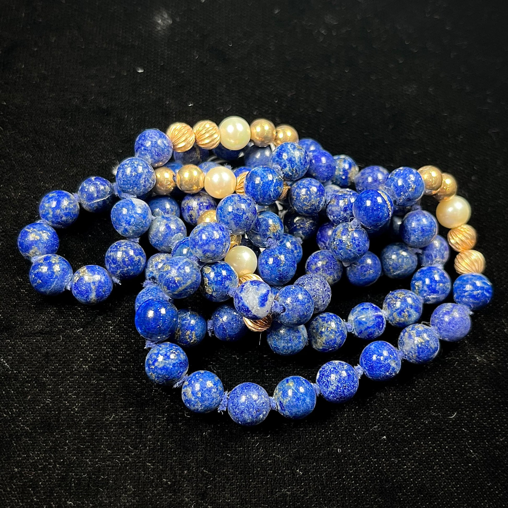 Lapis Lazuli Beaded Necklace with Gold and Pearl Bead accents - see wear report