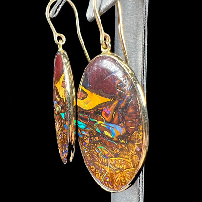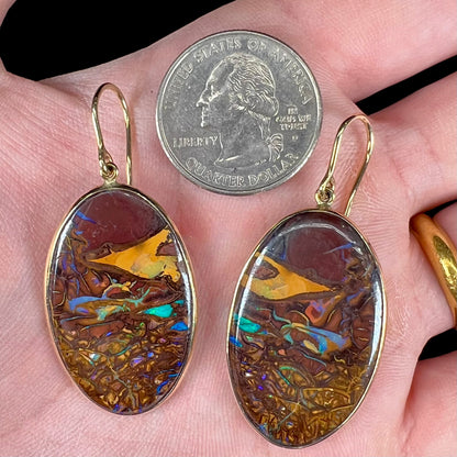 A Pair of Natural, Patterned Koroit Boulder Opal Dangle Earrings