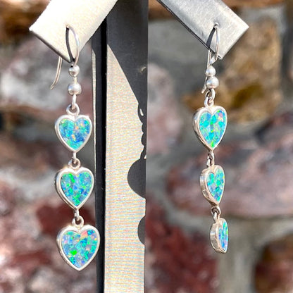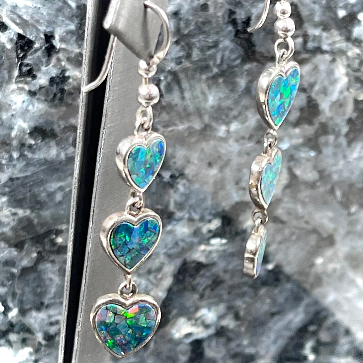 The Setting: Bezel set Three Heart Shape Dangle Earrings