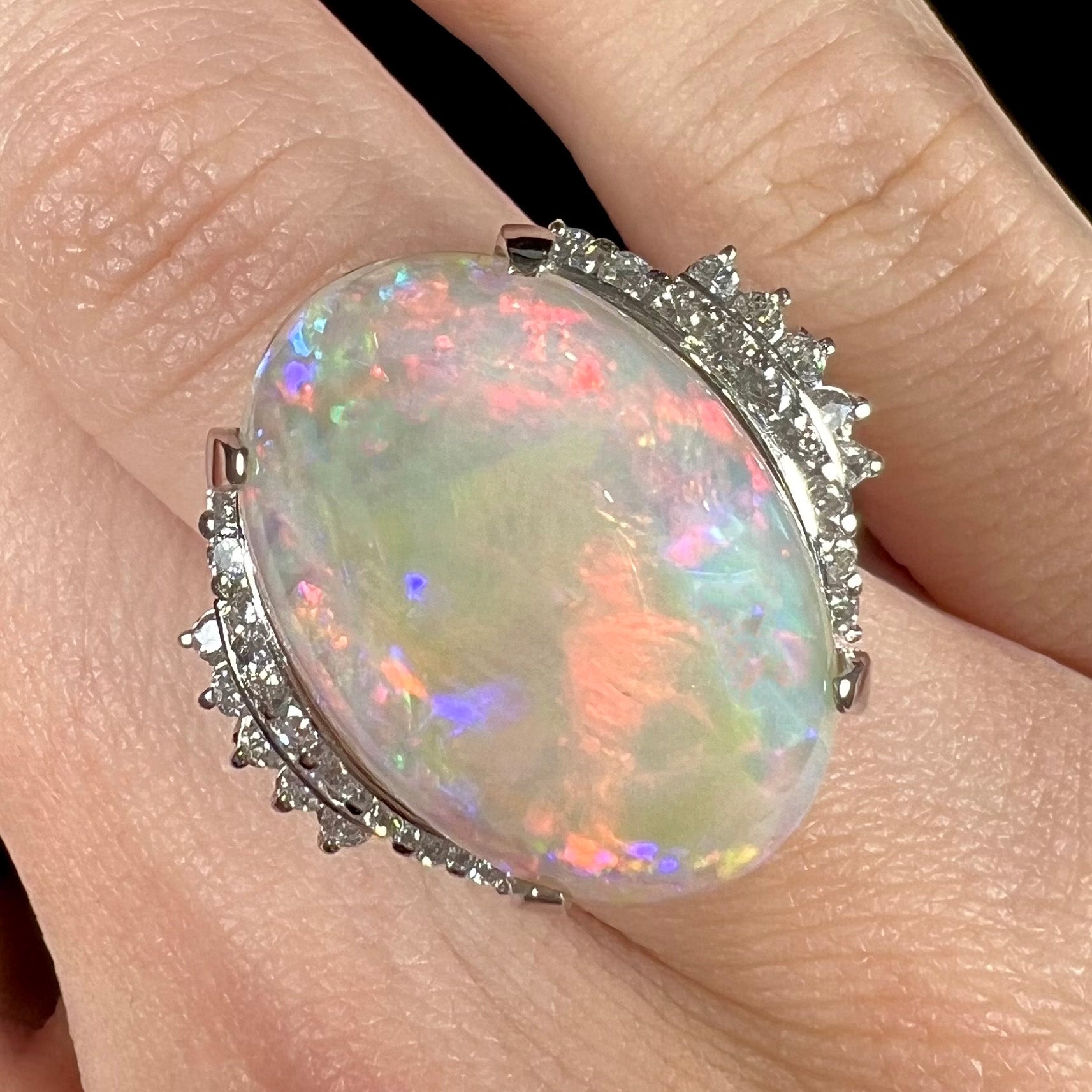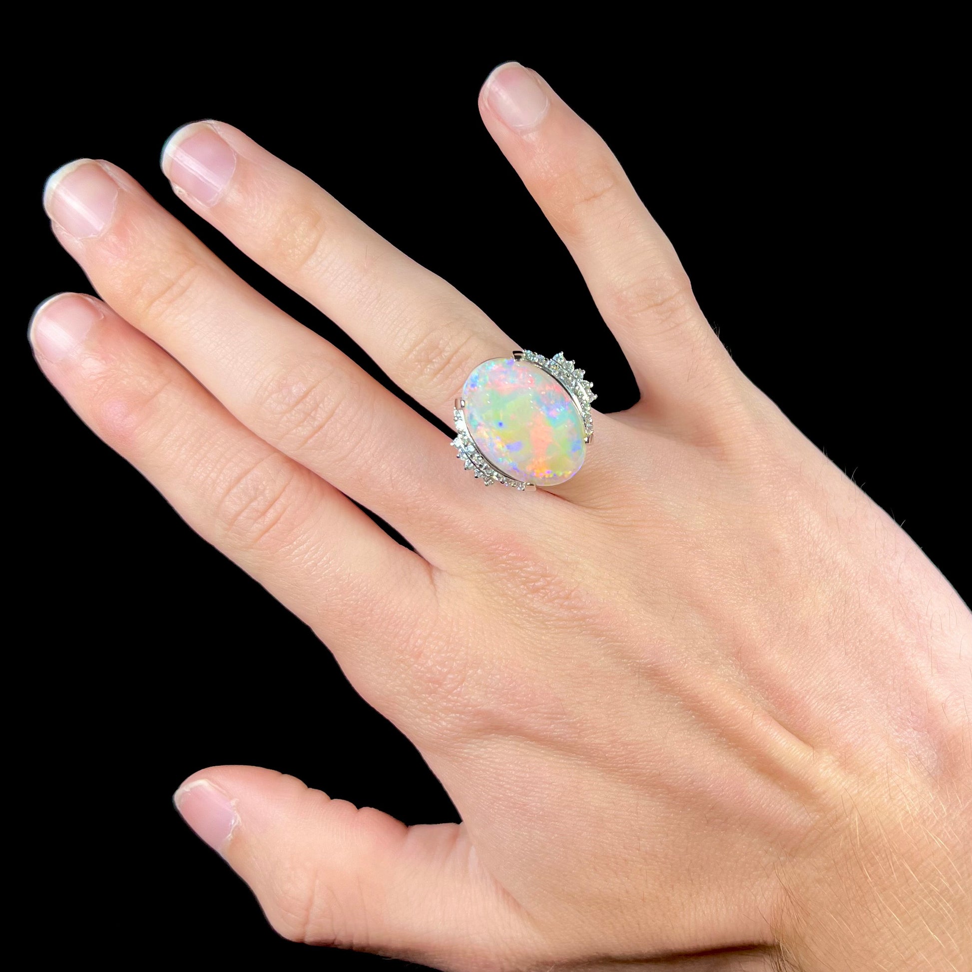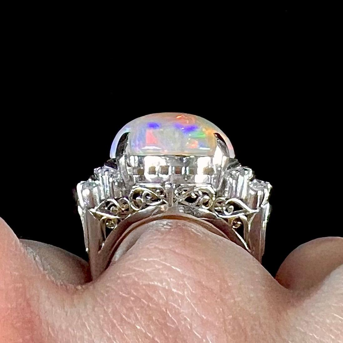 Nina | 12.54ct White Crystal Opal & Diamond Ring in Platinum