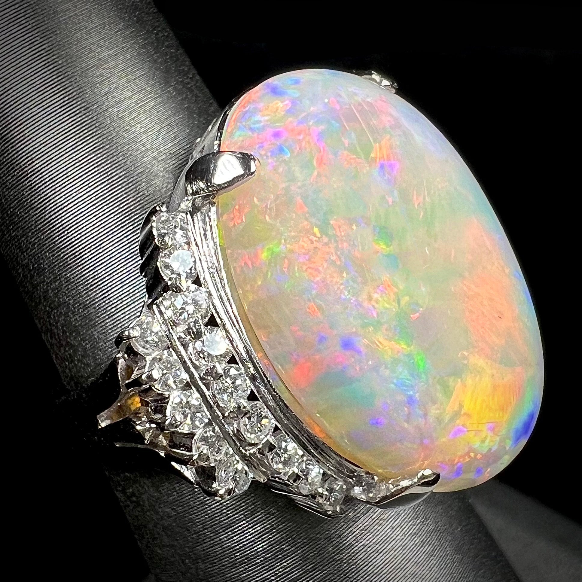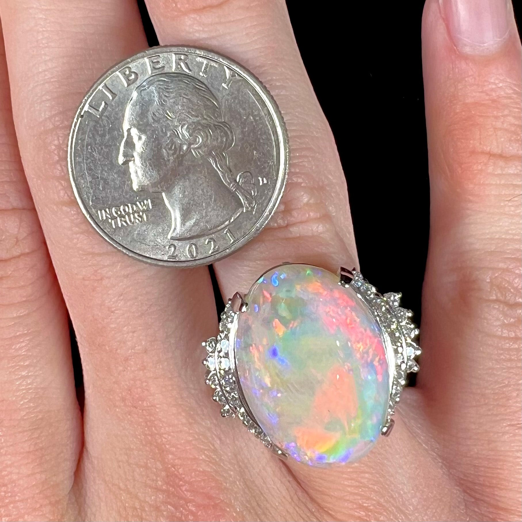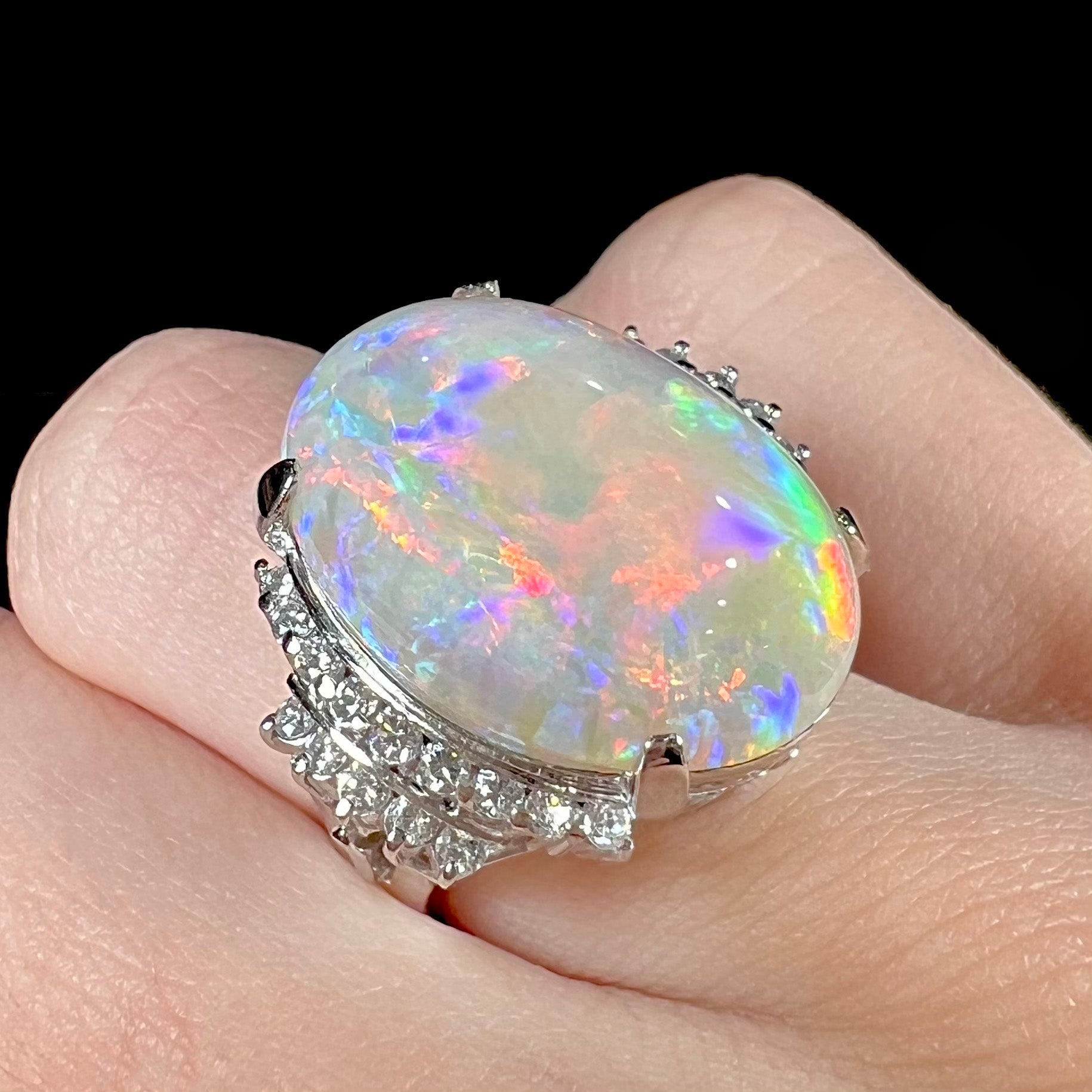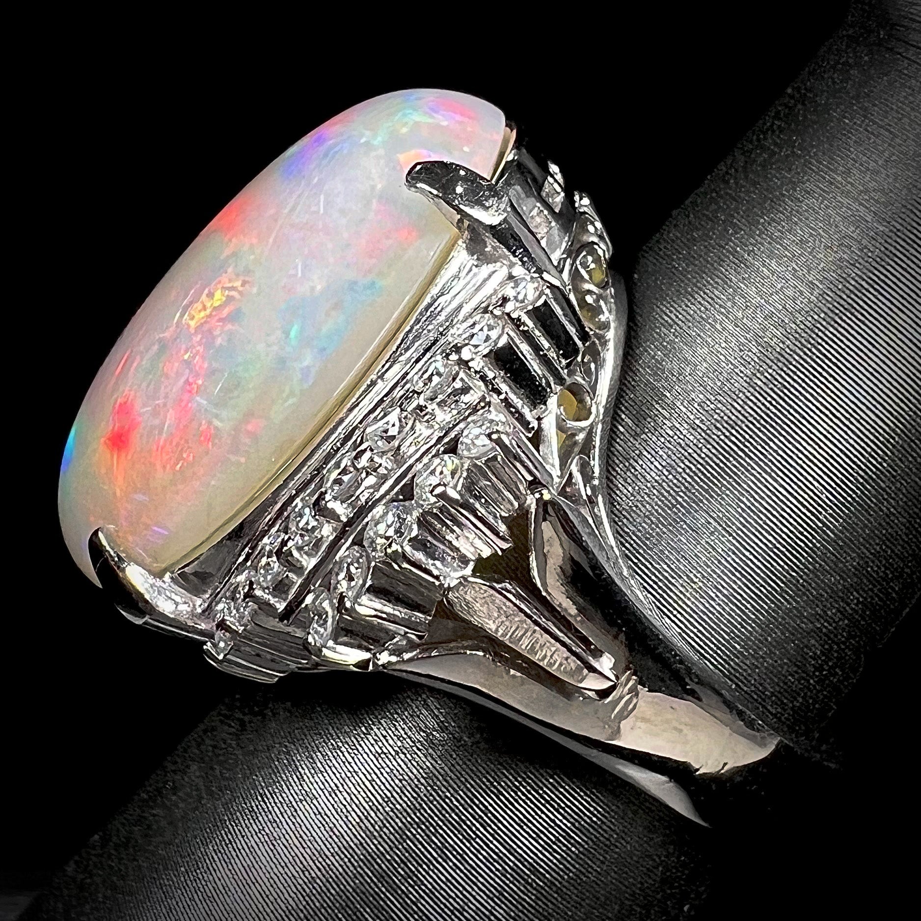 Nina | 12.54ct White Crystal Opal & Diamond Ring in Platinum