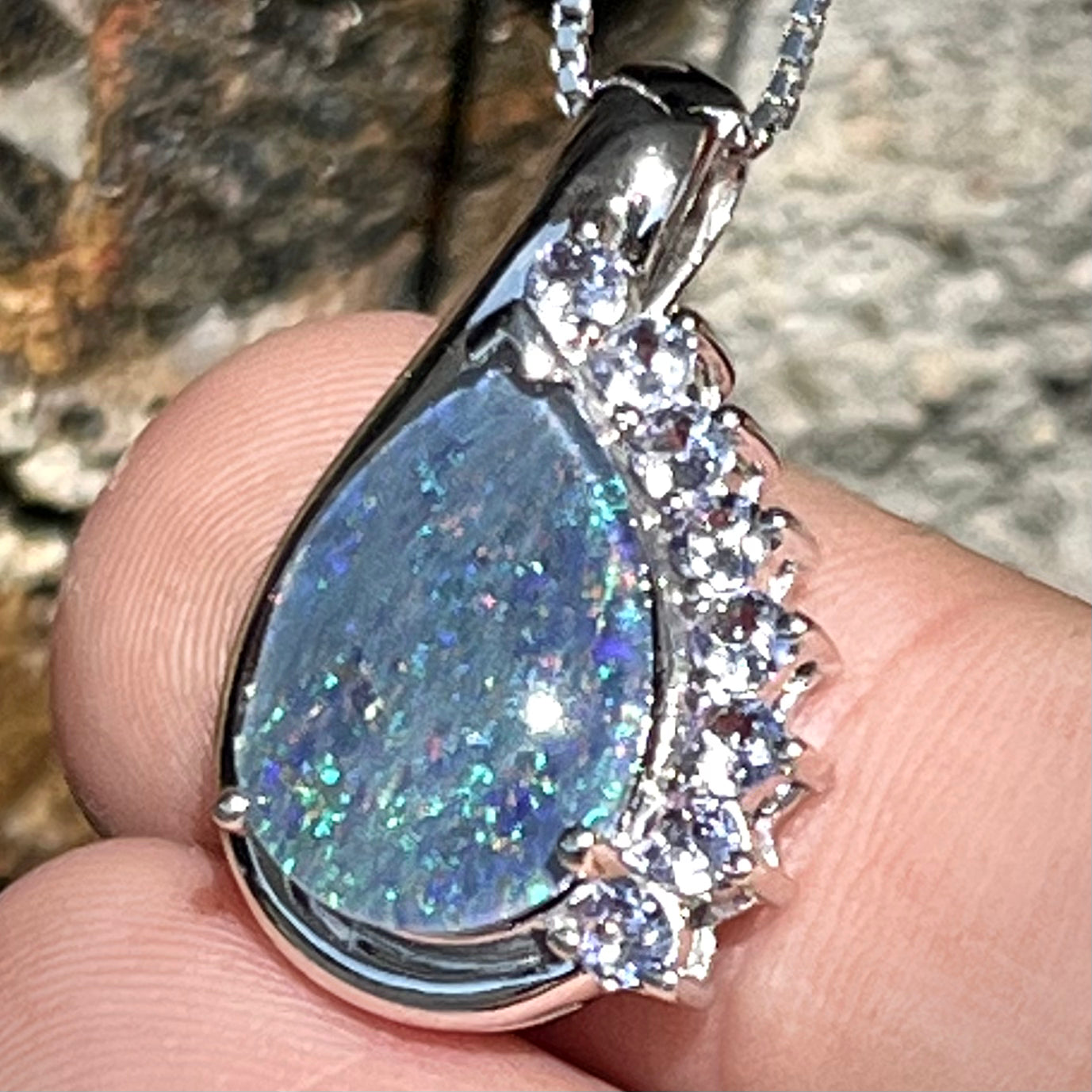 The Setting: Prong set Triplet Opal and Tanzanite Pendant set in Sterling Silver