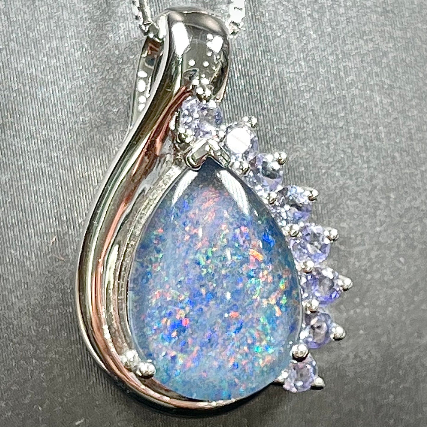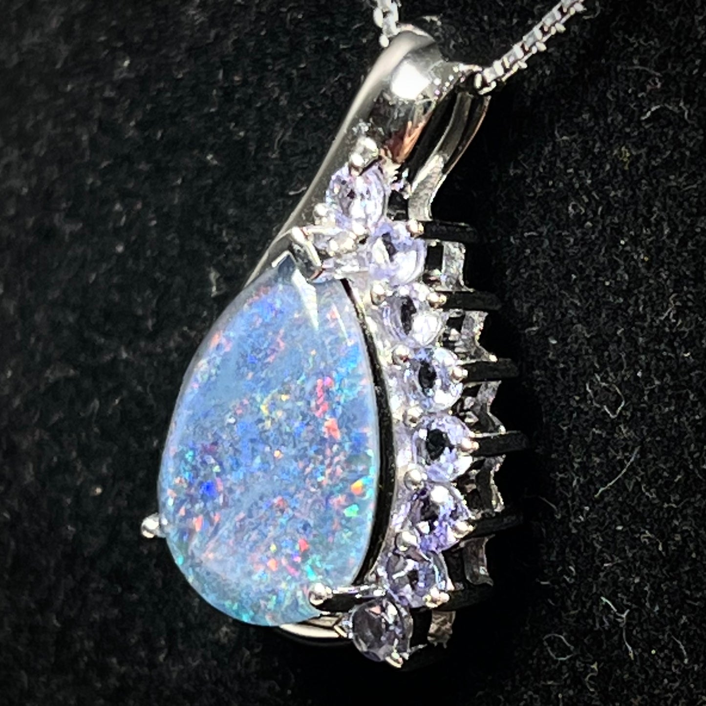 A Black Opal Triplet Necklace with Tanzanite Accents.